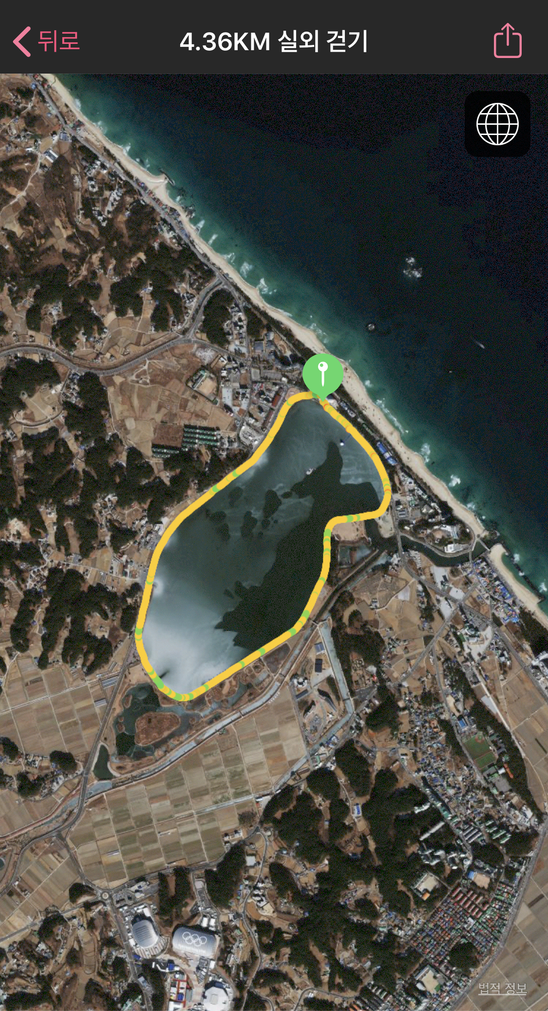 경포대를 한바퀴 도는데 약 4키로로 한시간 정도 걸립니다.