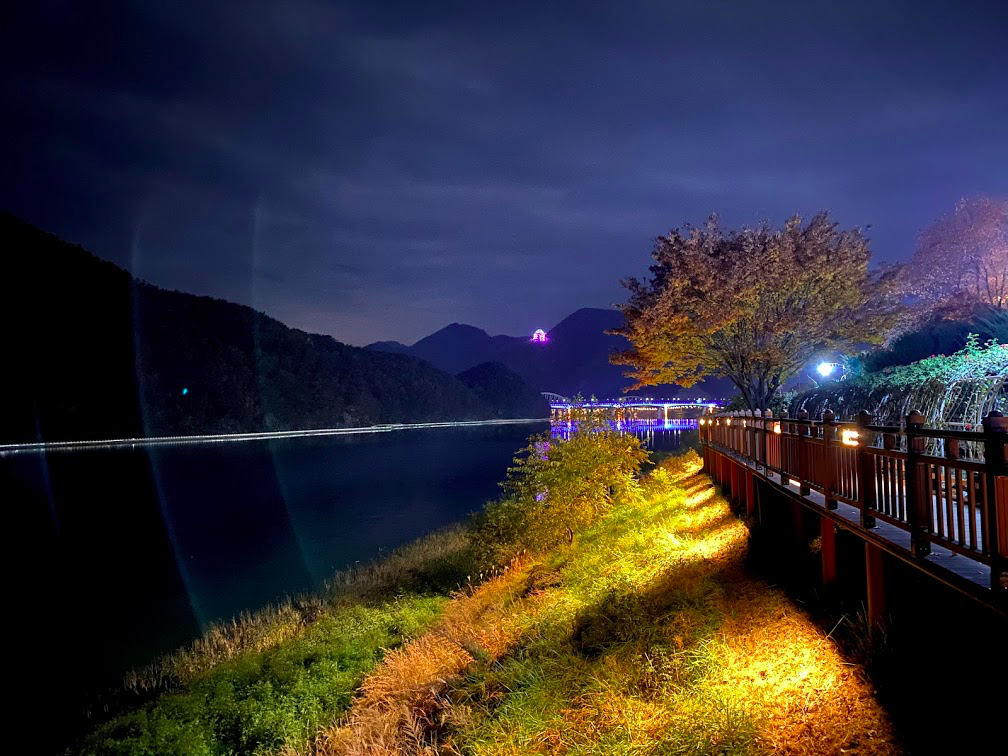 저녁식사를 하고 리조트에서 남한강 쪽으로 산책을 나갔습니다. 산책하기 좋은 날씨 였고 가을 날씨가 좋아서 걷게 되었는데 남한강쪽으로 산책로가 깨끗하게 정비되어 있어 눈이 즐거웠습니다.