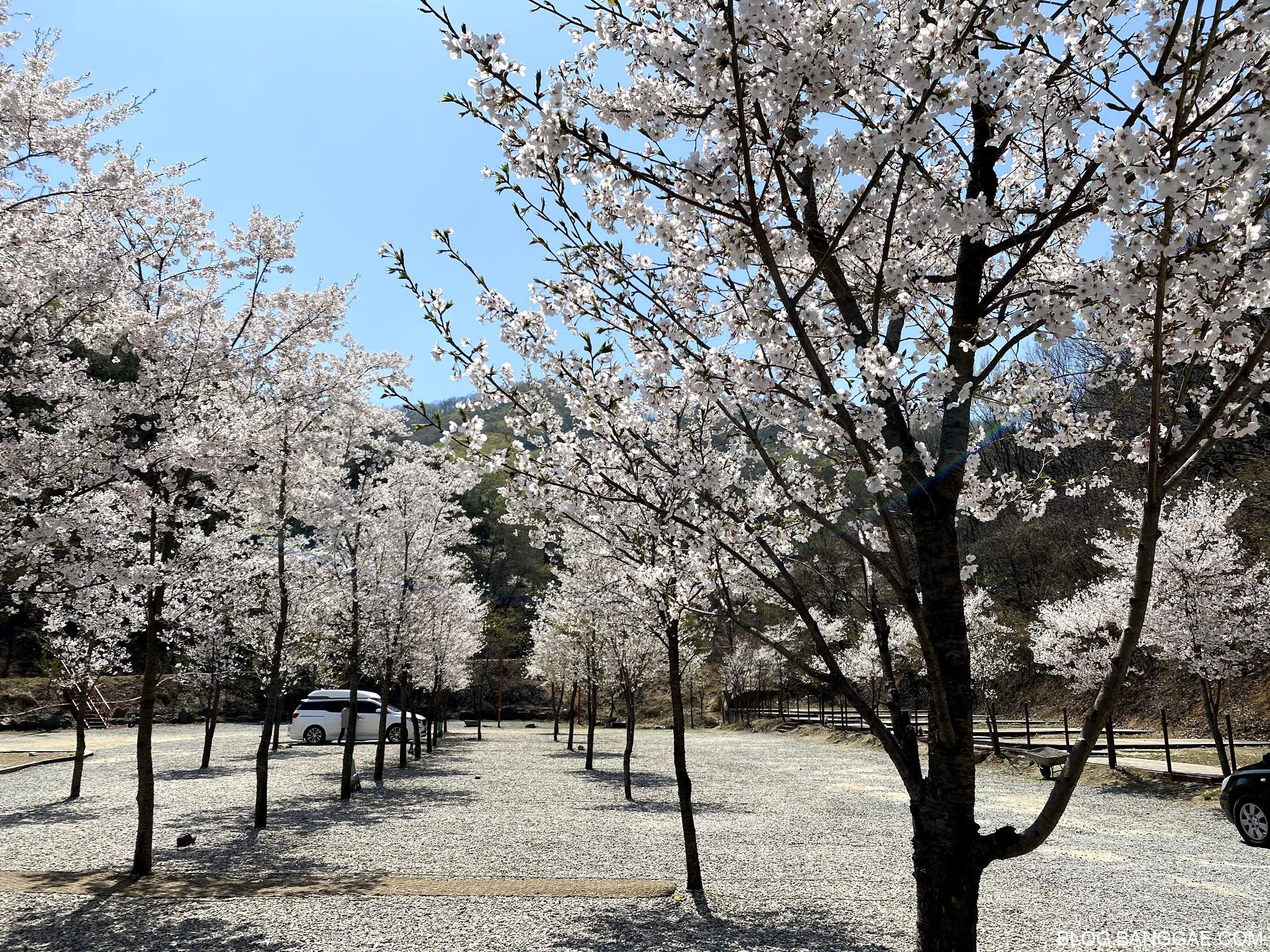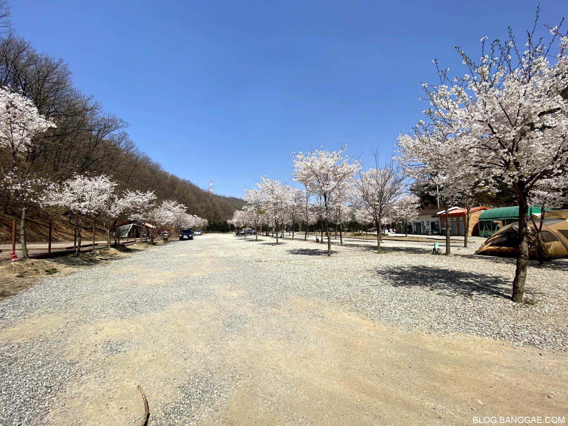 정돈된 느낌이고 평일이라 사람도 많지 않았었고 벚꽃도 만개해 좋은 기억을 갖고 있었니다. 다만 바람이 불 때마다 어디선가 풍겨오는 불쾌한 냄새와 몇 명안되는 캠핑장 사용자들이 사이트 앞에서 담배를 피워는 모습을 봐야 했던 기억도 있었습니다.