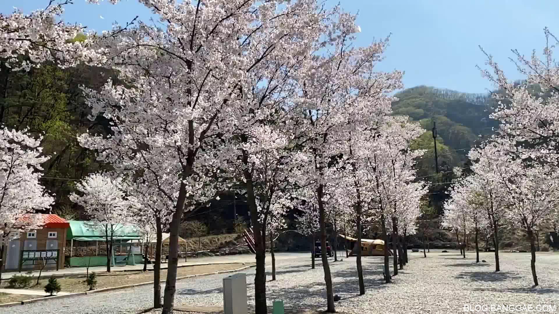 이 곳 캠핑장은 용인 산속에 위치하고 있어 벚꽃 개화 시기가 같은 지역에 비해 조금 더 느리긴 하지만 작년 사진을 보니 그래도 작년 보다는 벚꽃이 빨리 떨어져 버렸네요.