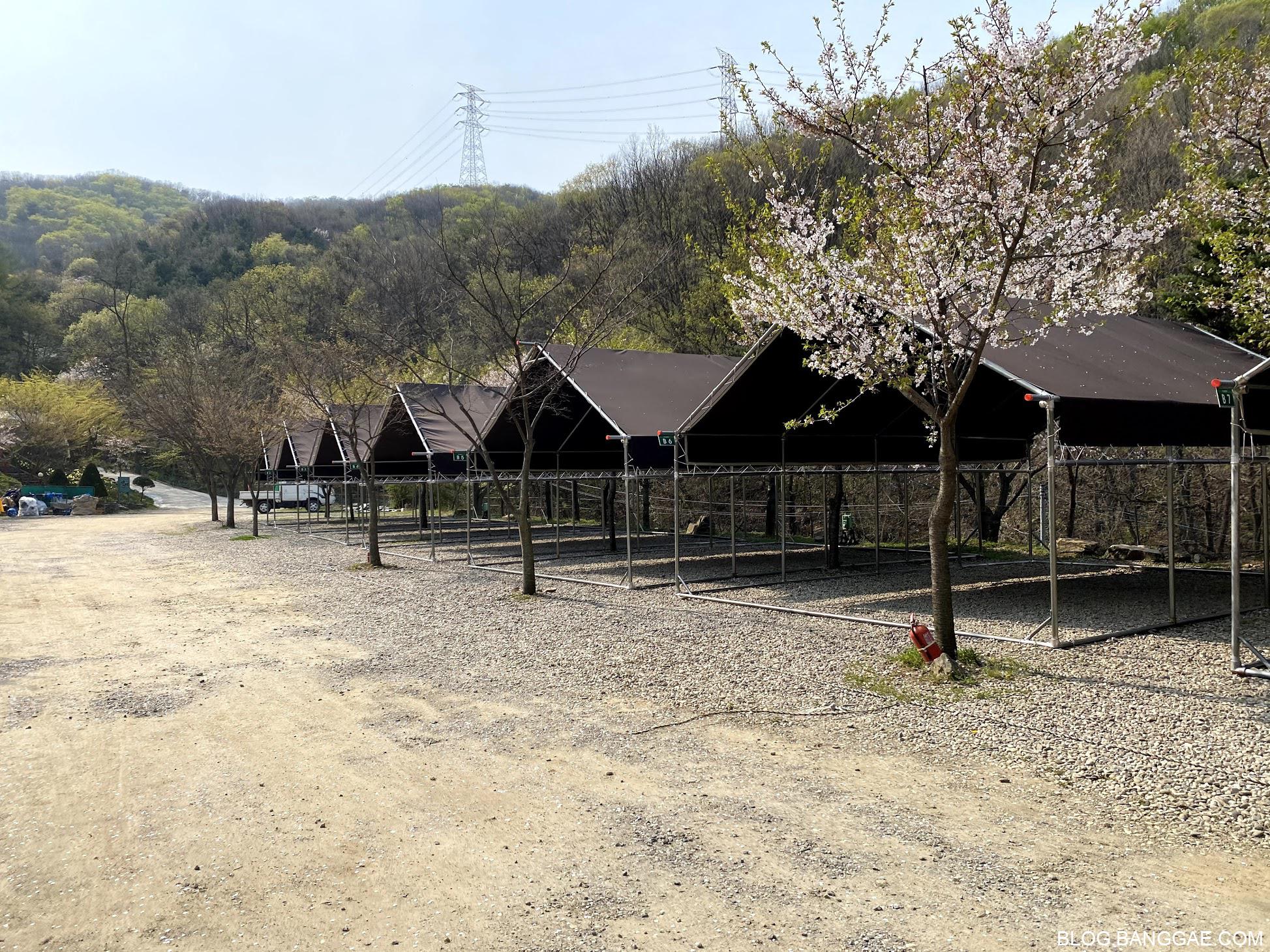 1캠핑장에 그늘막 사이트가 있네요. 비오는 날 사용하면 정말 좋을 것 같은 자리네요. 비용은 일반 자갈 자리 보다 1만원 비싸게 책정 되어 있습니다.