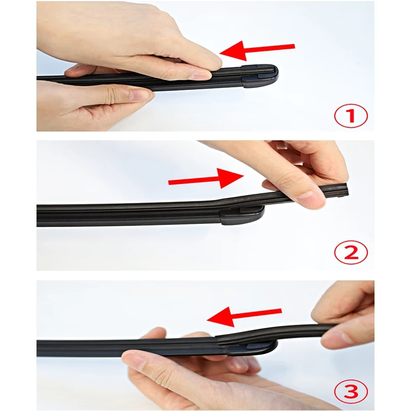 제거 방법은 아래 사진과 같이 와이퍼 날을 안쪽 방향으로 당겨서 쭉 빼주면 쉽게 빠집니다.