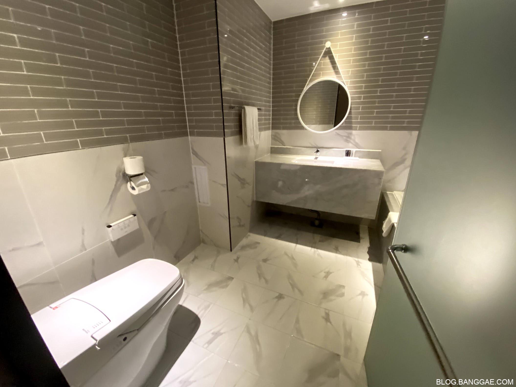 화장실도 좀 더 넓어 졌습니다. 거울 앞 조명이 좀 더 밝았으면 좋았을 것 같은데 사용하는 내내 불편해서 아쉬웠네요.
