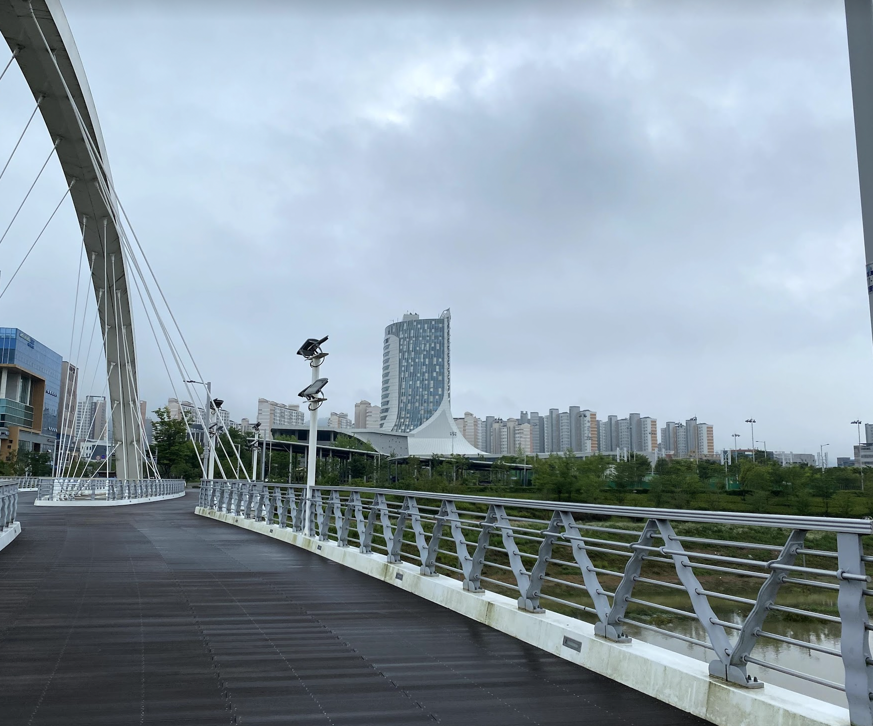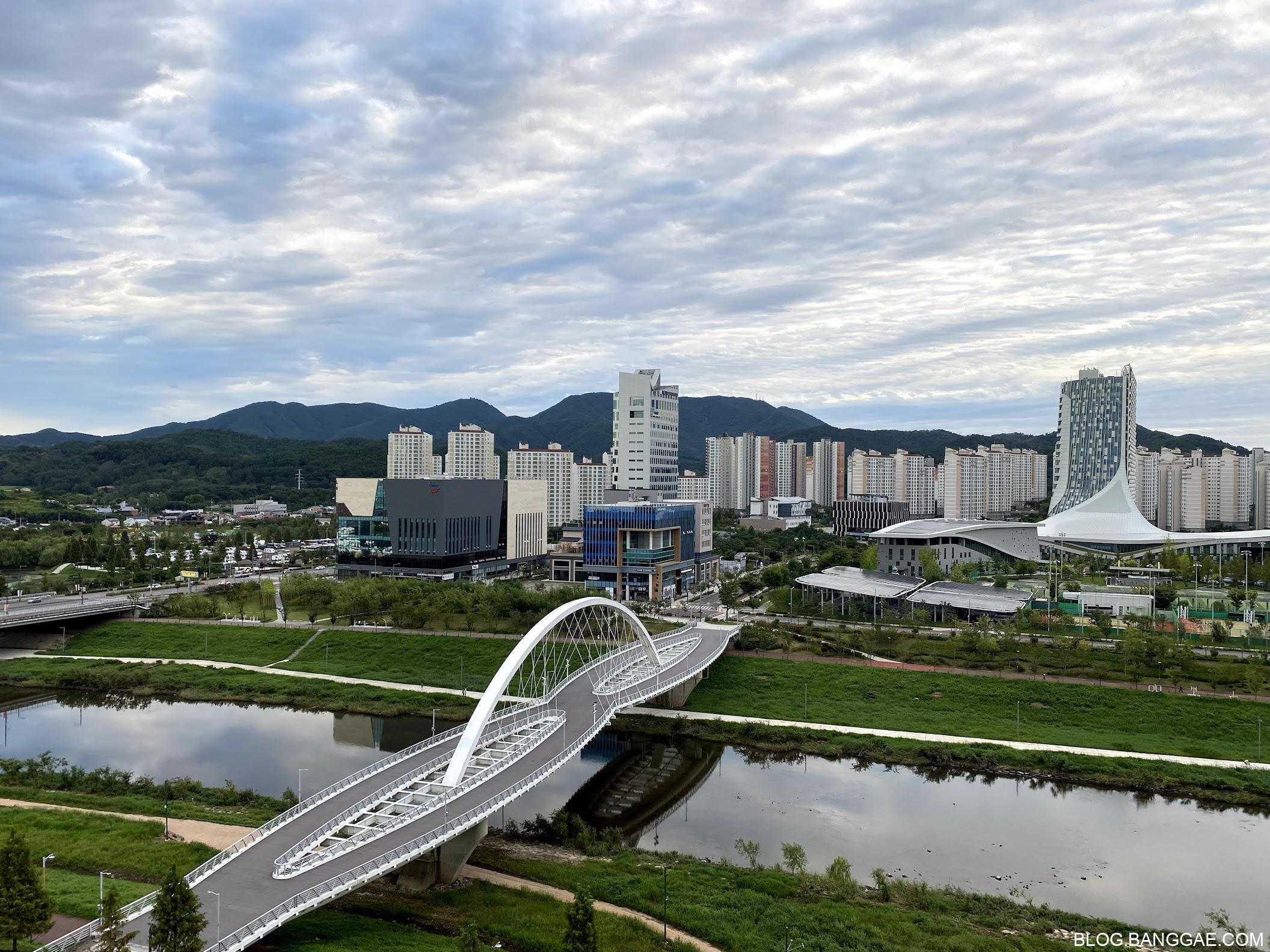 혁신 도시에서는 걸어서 약 15분 내외로 걸릴 것 같습니다. 혁신도시에서 도보로 올 때는 아래 사진의 다리로 건너는게 제일 좋은 경로 였습니다.