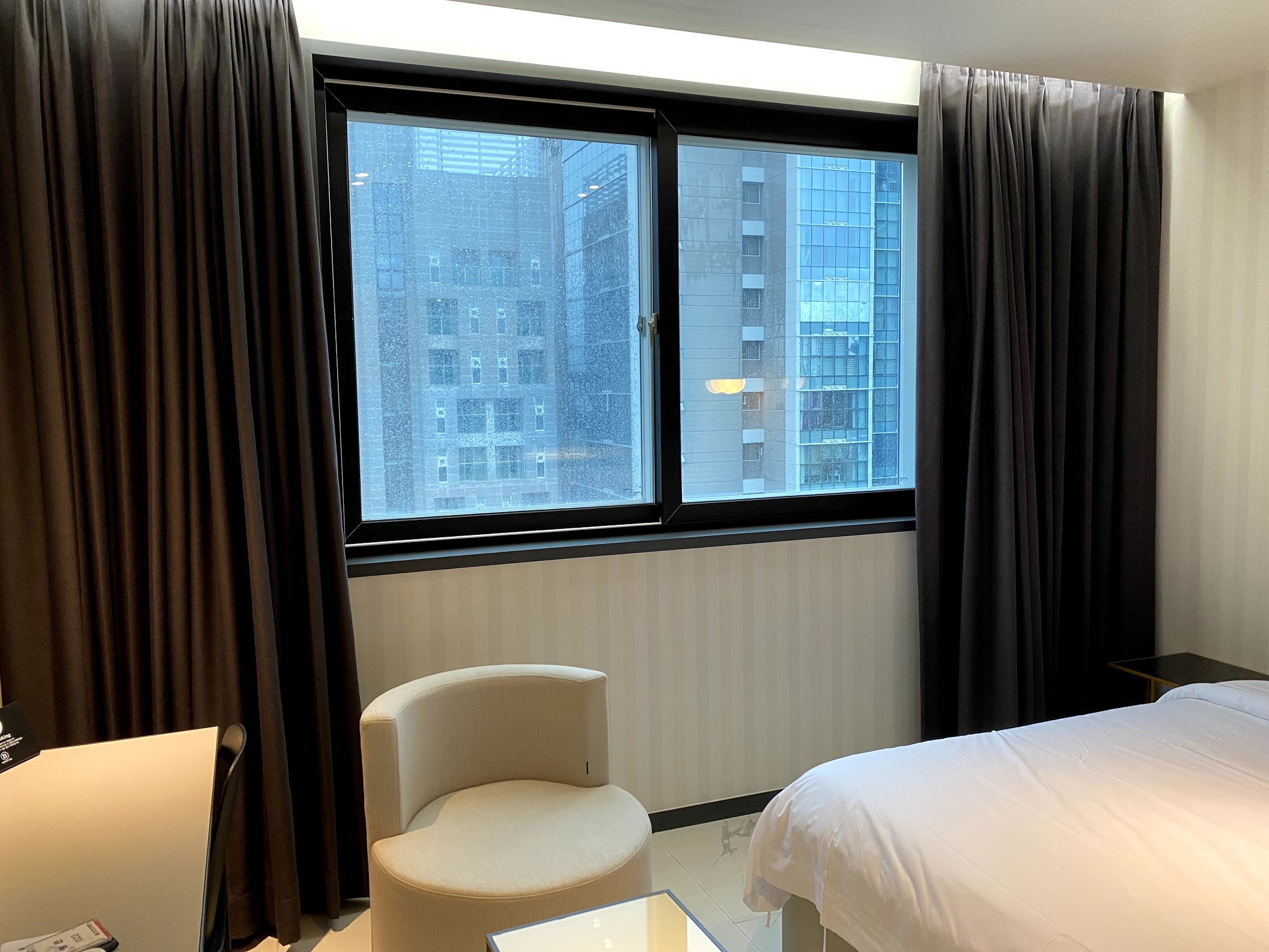 추가 비용을 지불 해서 강쪽으로 방을 배정 받으면 되는 문제라 단점이 아닐 수도 있지만 도시쪽 방은 앞에 오피스텔 사람이 보일 정도로 방에 불을 켜 놓으면 서로가 보이는 구조라 밤에는 커튼을 쳐 놓을 수 밖에 없습니다.