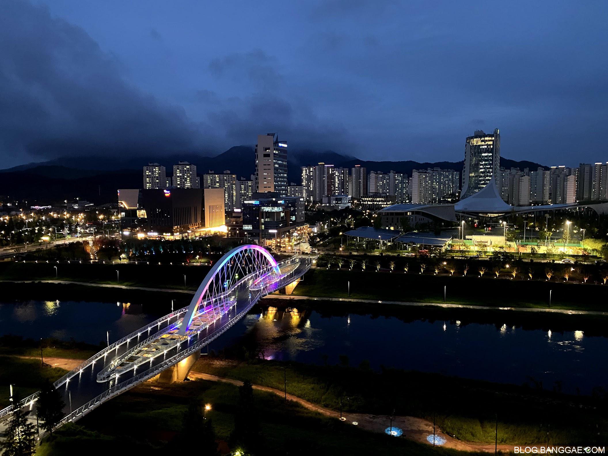 혁신 도시에서는 걸어서 약 15분 내외로 걸릴 것 같습니다. 혁신도시에서 도보로 올 때는 아래 사진의 다리로 건너는게 제일 좋은 경로 였습니다.