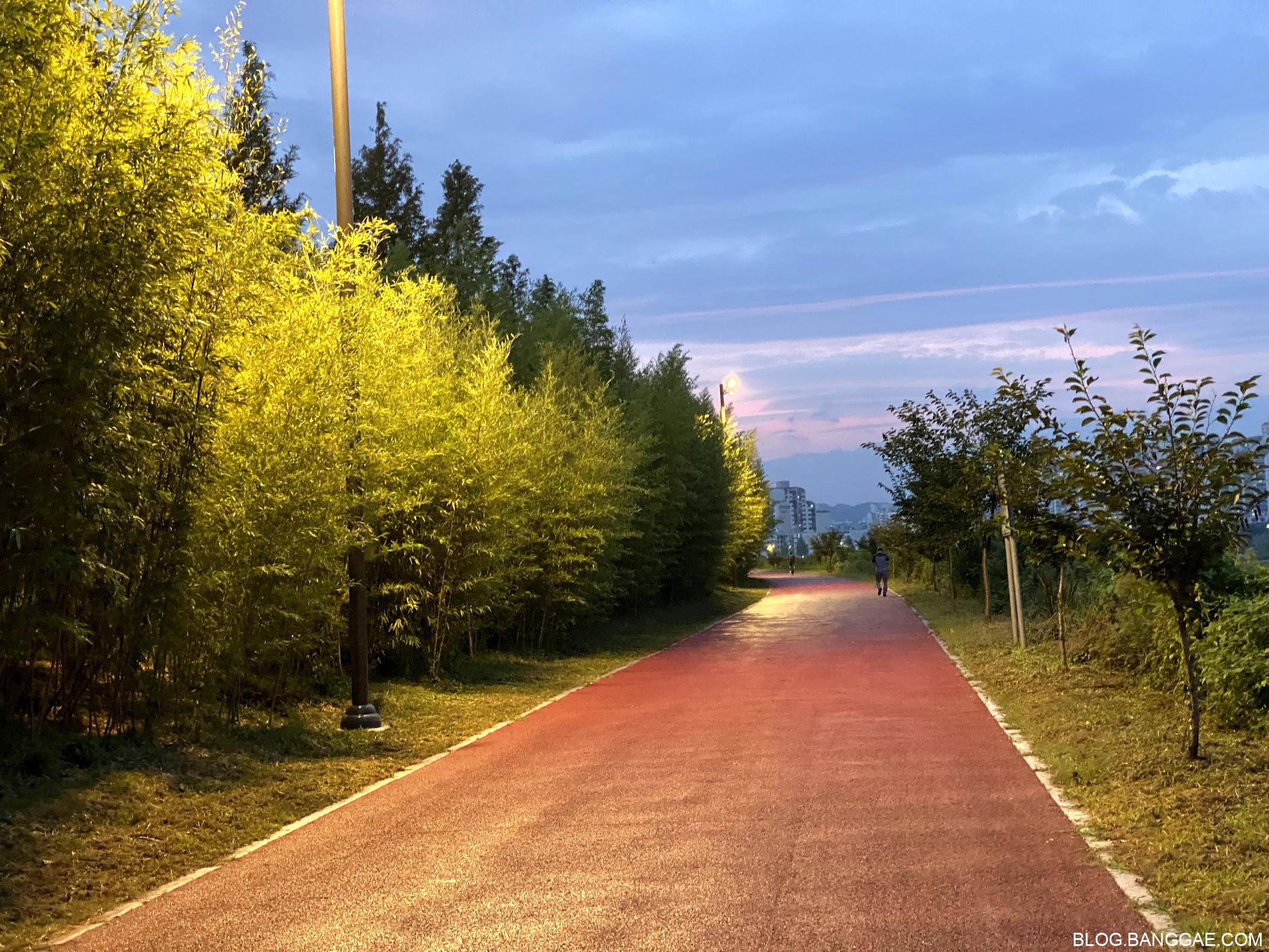 야간에 강으로 내려가 진주종합경기장을 끼고 강쪽으로 걸어 봤는데 산책로도 잘 되어 있습니다.