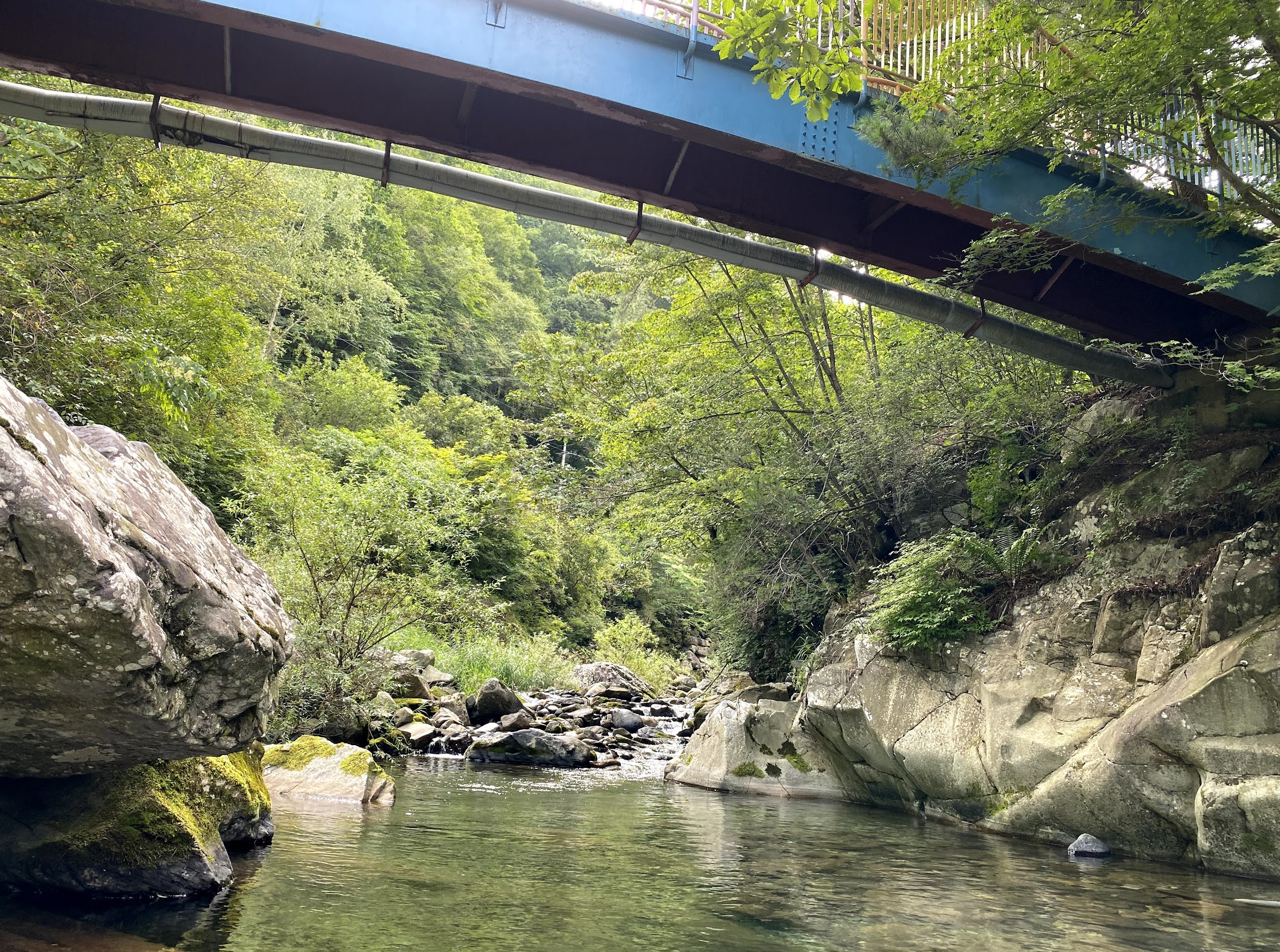 숲속의 집 앞의 심마니교와 계곡의 모습입니다.