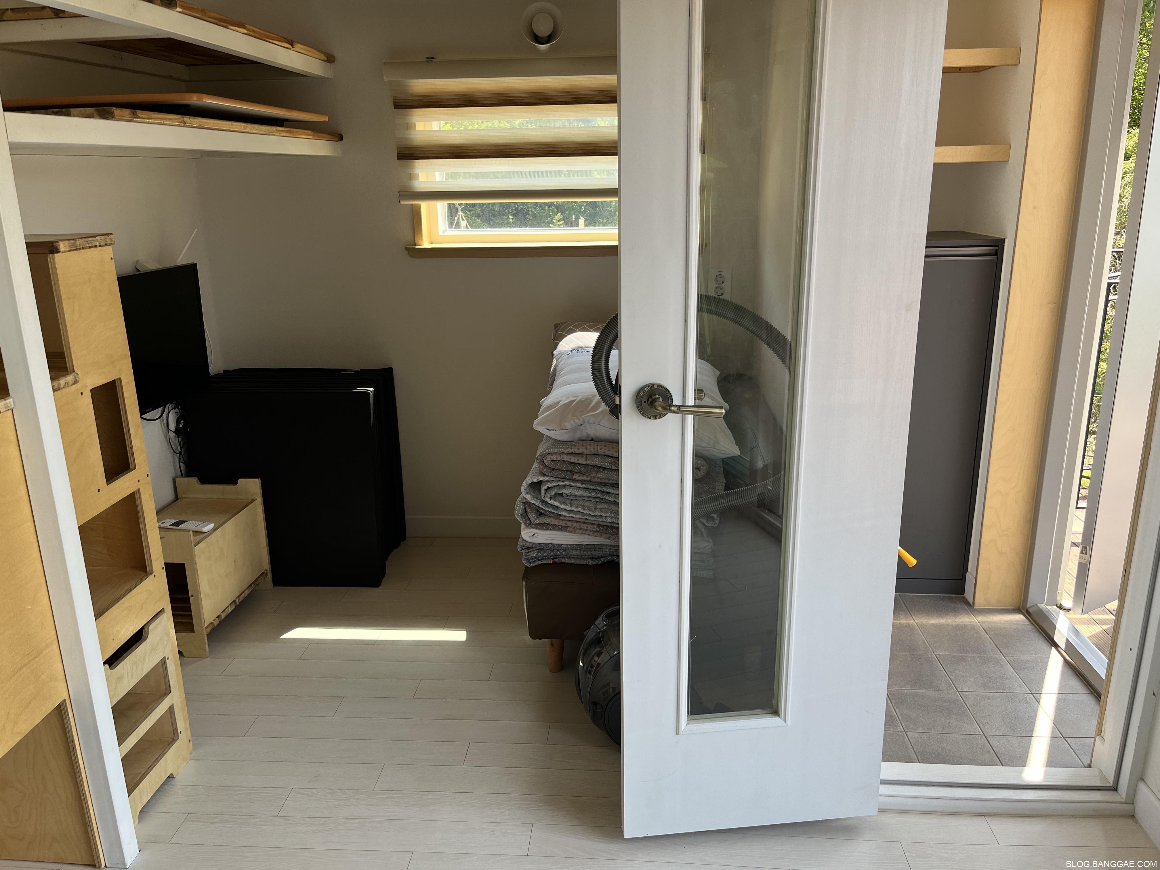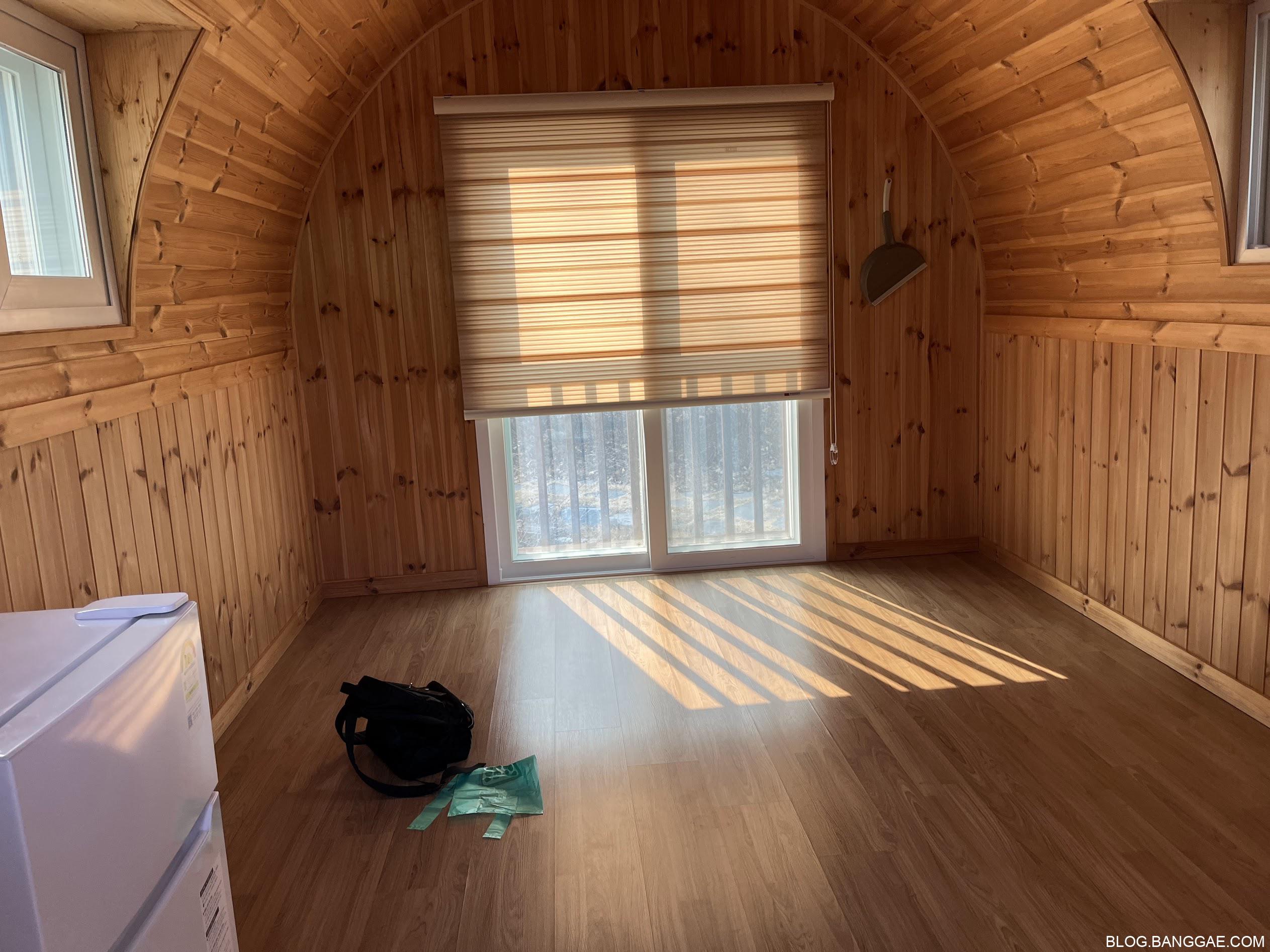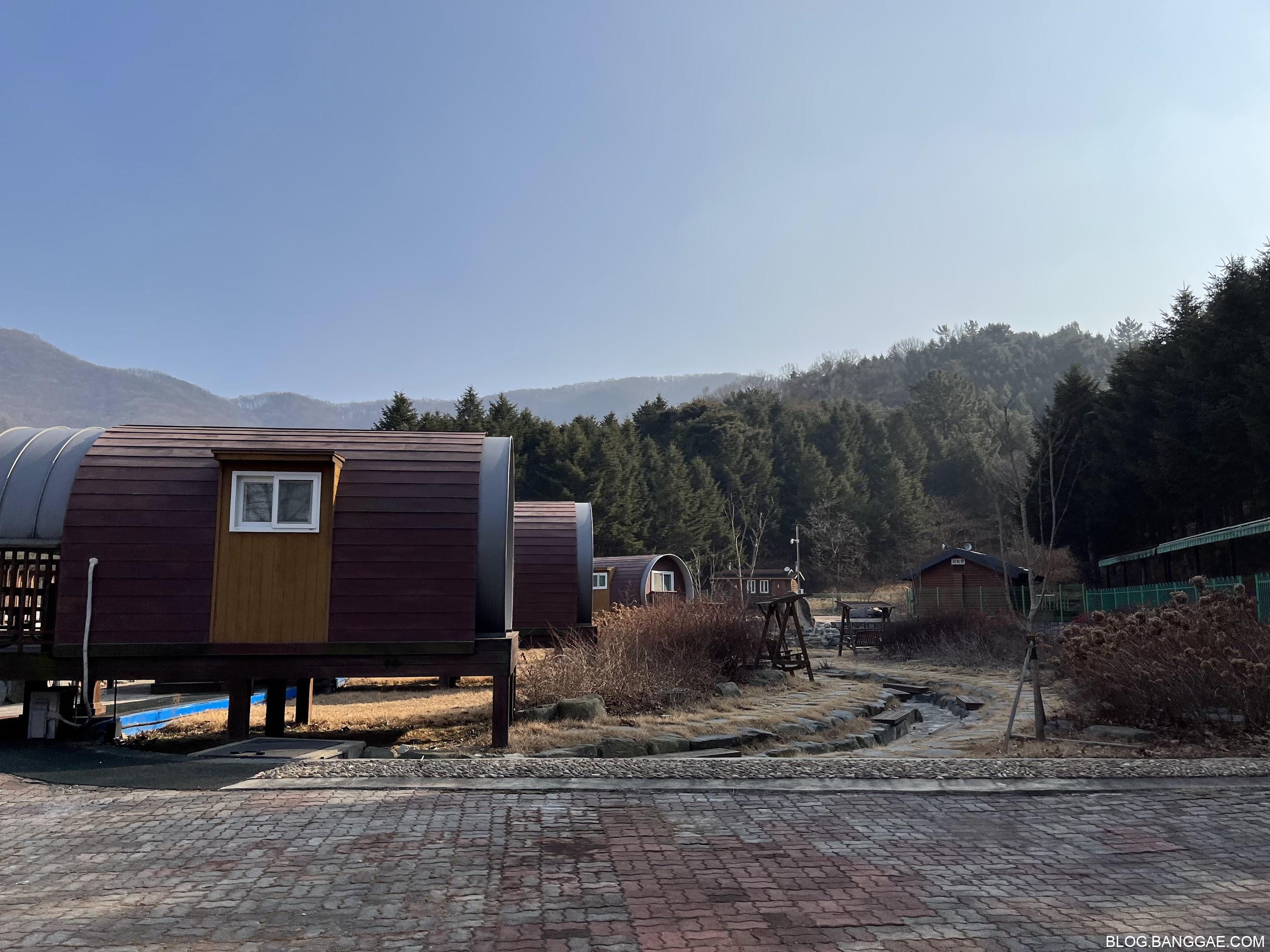 캐빈하우스는 이렇게 생겼습니다. 각각의 캐빈하우스가 떨어져 있긴 하지만 각자의 소리는 다 들릴 정도의 거리 입니다.
