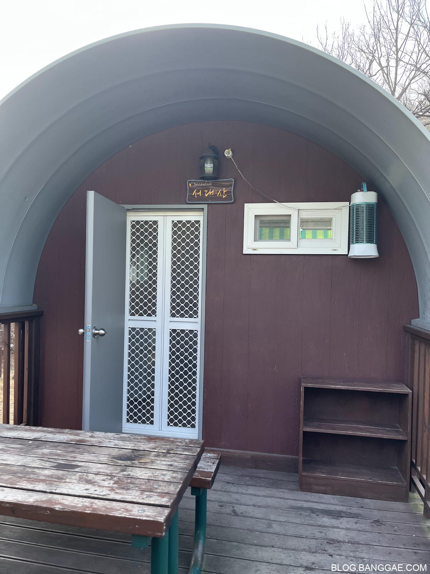 예약한 서대산 입니다. 숙소 앞에 작은 테이블이 있습니다.