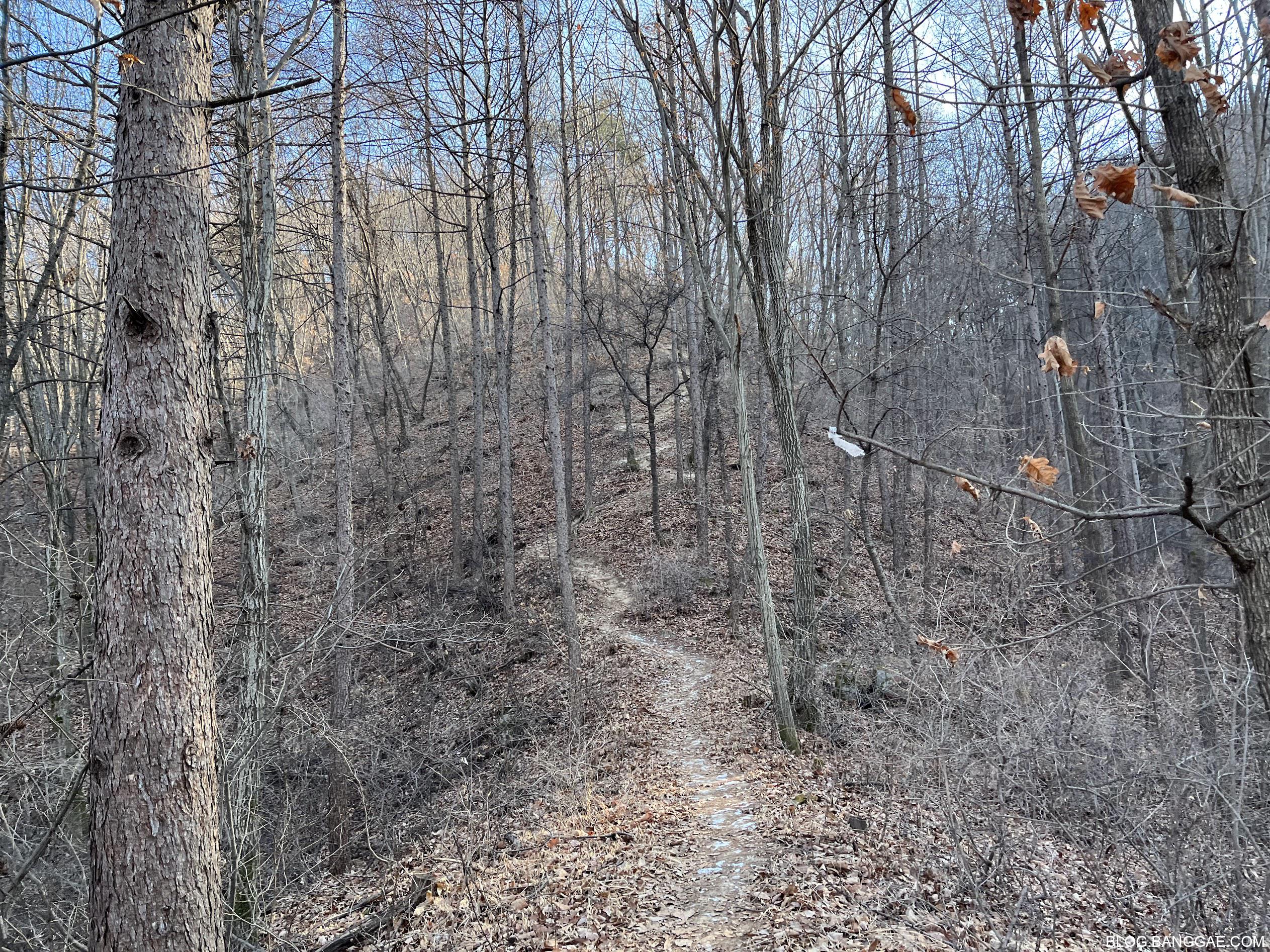 걷다보니 휴양림으로 가는 표지판과 선상을 넘어 가는 길이 아닌 계단으로 내려가는 길이 보여 이 쪽길로 하산하기로 했습니다. 이길은 숲속 수련장으로 이어지는 길이며 처음 올라온 길보다 0.8km 더 길고 급경사는 없으나 내리막길과 오르막길이 약간 반복되어 있습니다.