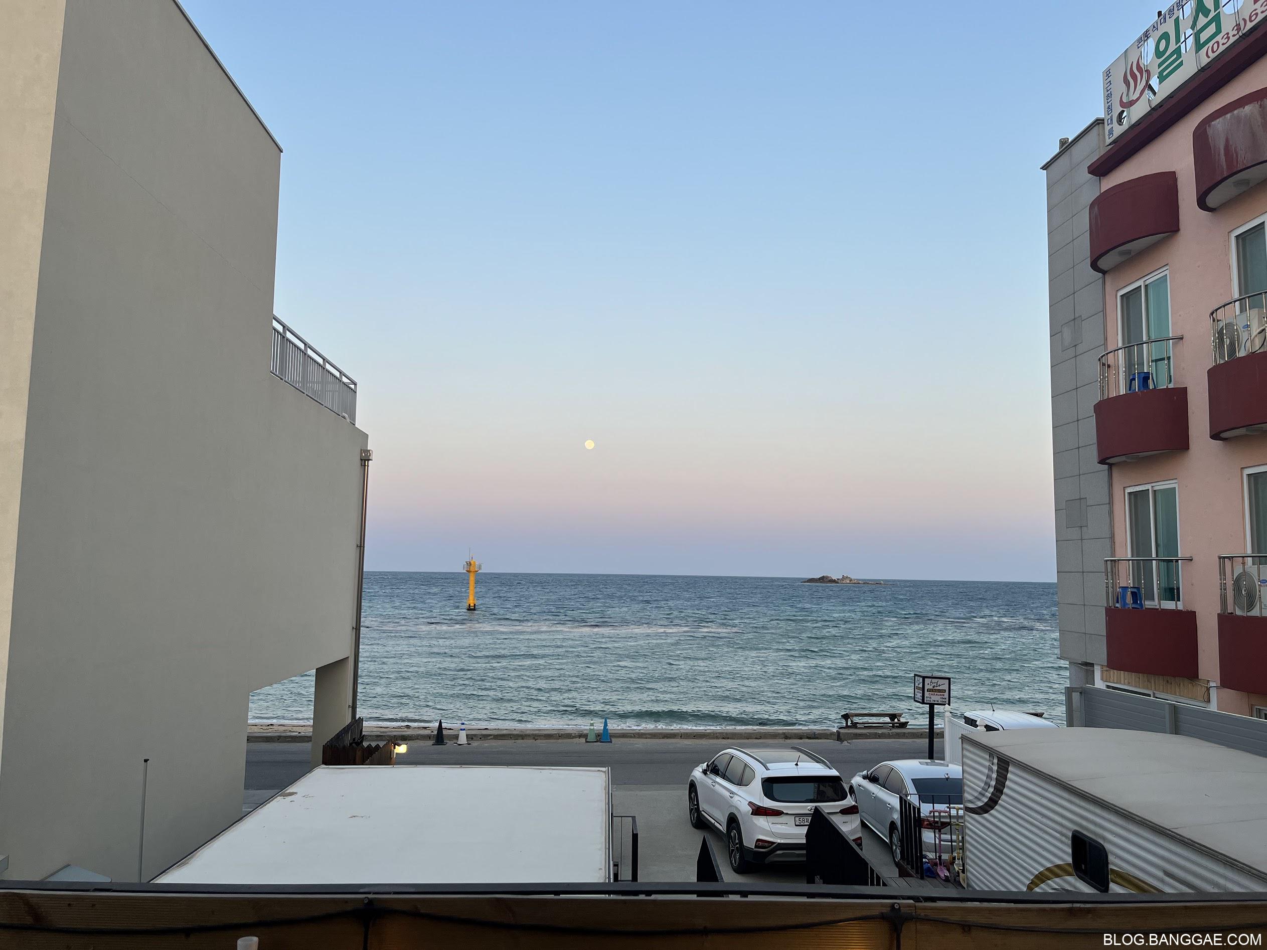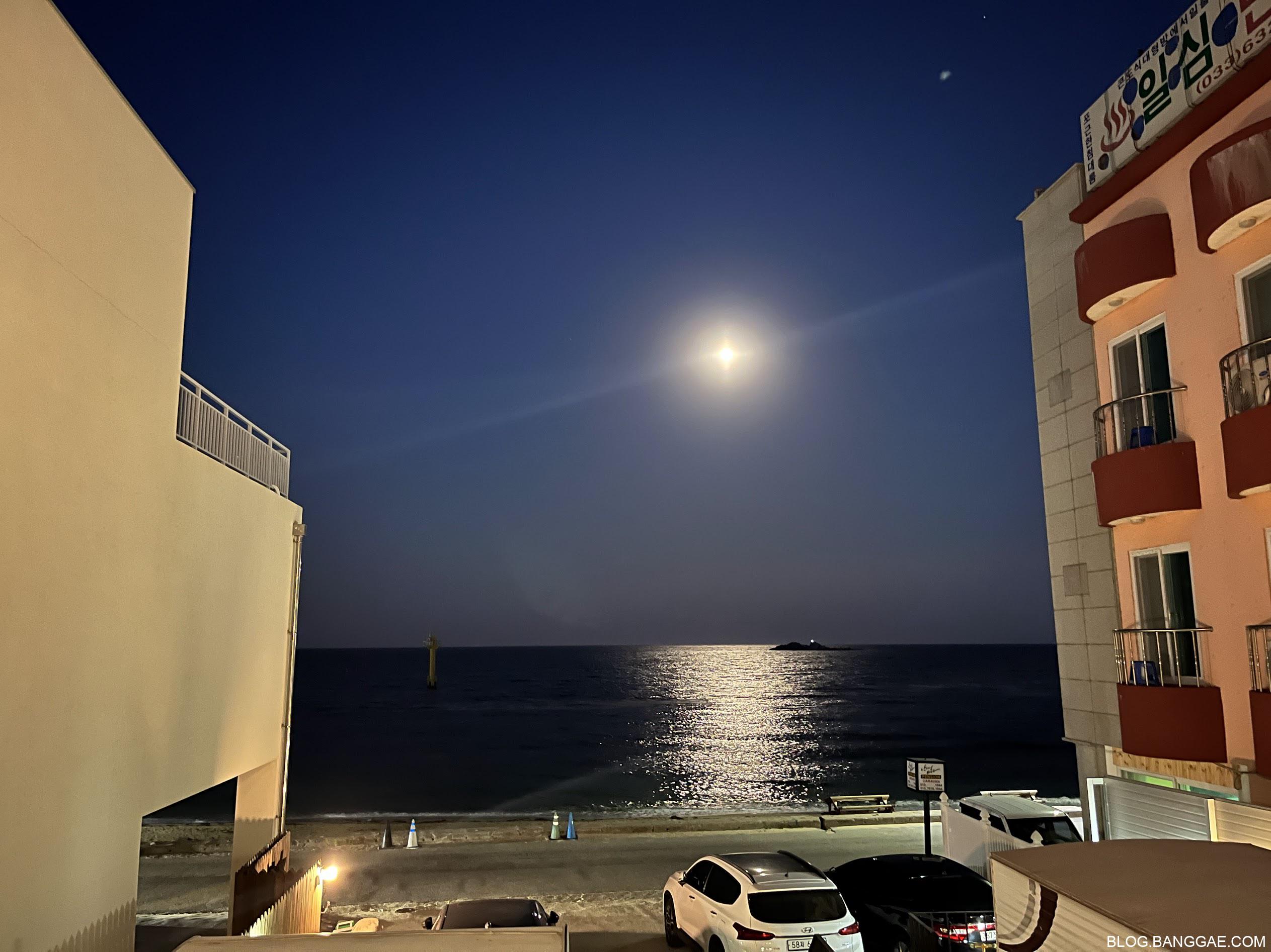 저녁엔 달빛이 바다를 비추는데 바다가 잔잔해 호수에 뜬 달을 보는 기분도 들었습니다.