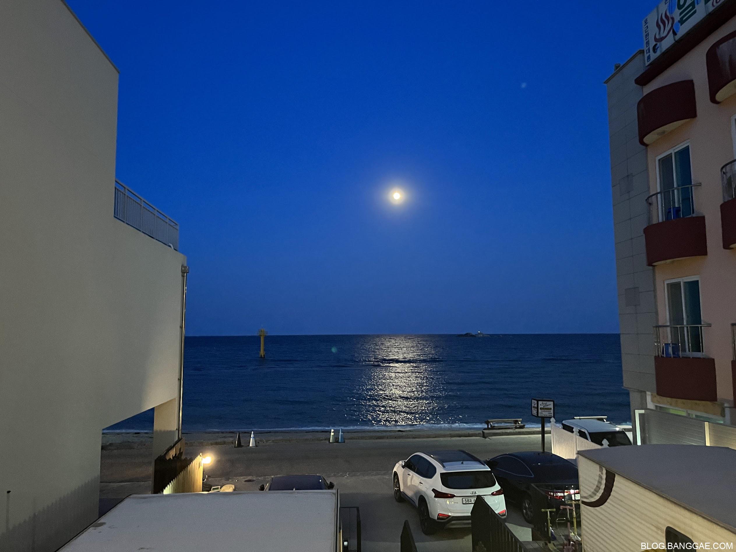 저녁엔 달빛이 바다를 비추는데 바다가 잔잔해 호수에 뜬 달을 보는 기분도 들었습니다.