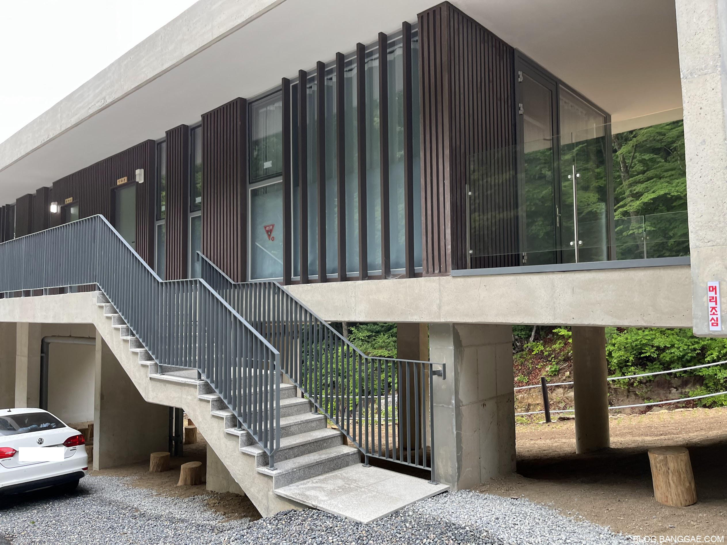 캠핑장 바로 옆에 연립동 건물이 있는데 새로 지어진 건지 깨끗해 보이네요.