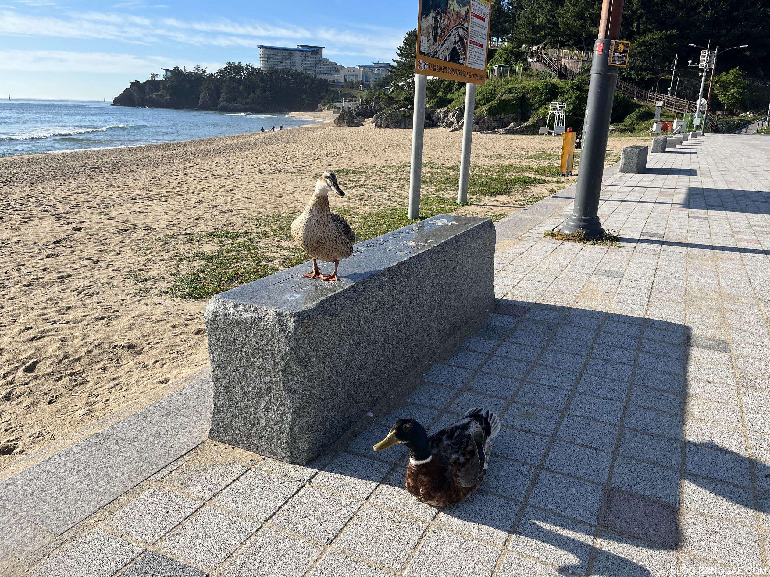 추암해변에는 오리가 많이 보이네요. 멀리 사진 뒤로 숙소가 보입니다.