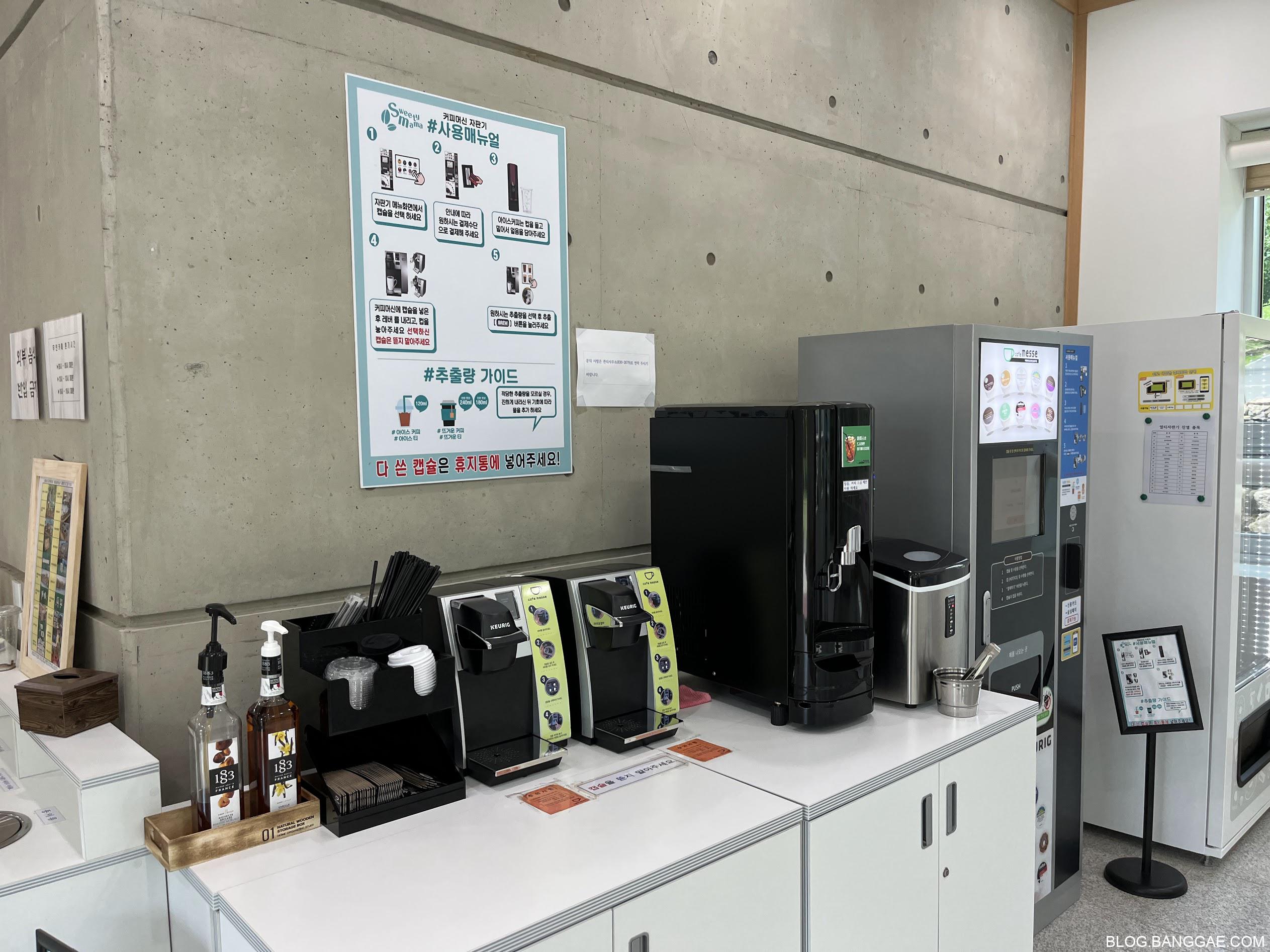 무인카페 깨끗하고 캡슐커피도 많이 비싸지 않고 맛있었습니다. 카페가 넓고 시원해서 신경 많이 쓴 느낌을 받았습니다.