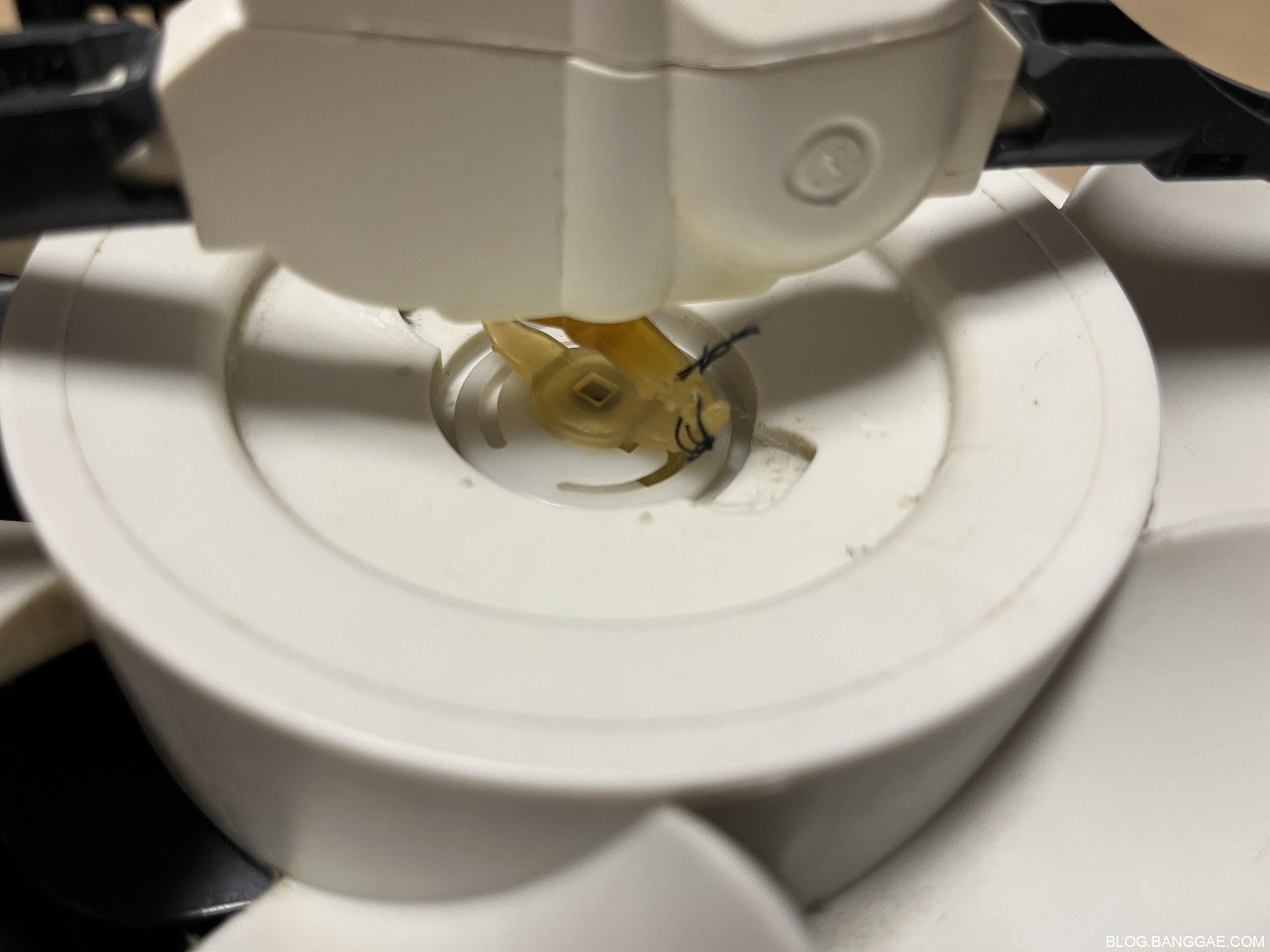 십년 넘게 사용 중인 벤타가 돌아 갈 때 심각한 소음이 발생 하기 시작 했습니다. 분해를 해서 청소를 하다가 보니 부품이 깨진 것이 눈에 띄었습니다. 사진을 자세히 보면 아래쪽 부분이 끊어 진 것이 보입니다. 모터와 연결된 부분인데 시간이 오래 되어 부품이 노후화로 끊어 진 것 같습니다.