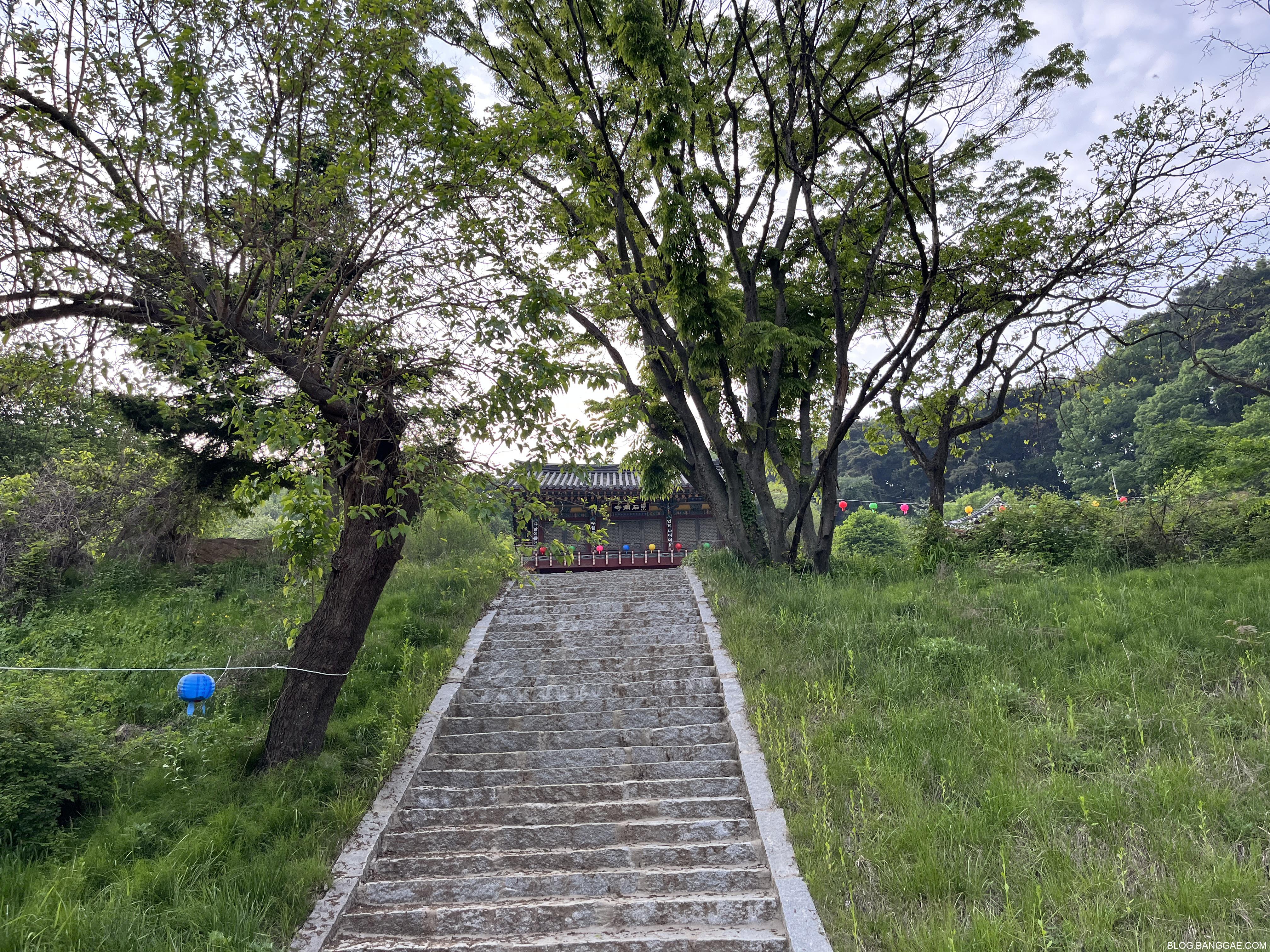 휴양림 근처 석남사까지 산책삼아 걸어서 다녀 왔습니다. 방문객이 많지 않은 절이라 조용한 도로를 혼자 걸어서 갔는데 부처님오신날 준비 중이라 연등도 달려 있고 도깨비 촬영지라고 하니 관심 있으신 분들은 방문해 보시는 것도 느낌 있을 듯 합니다.