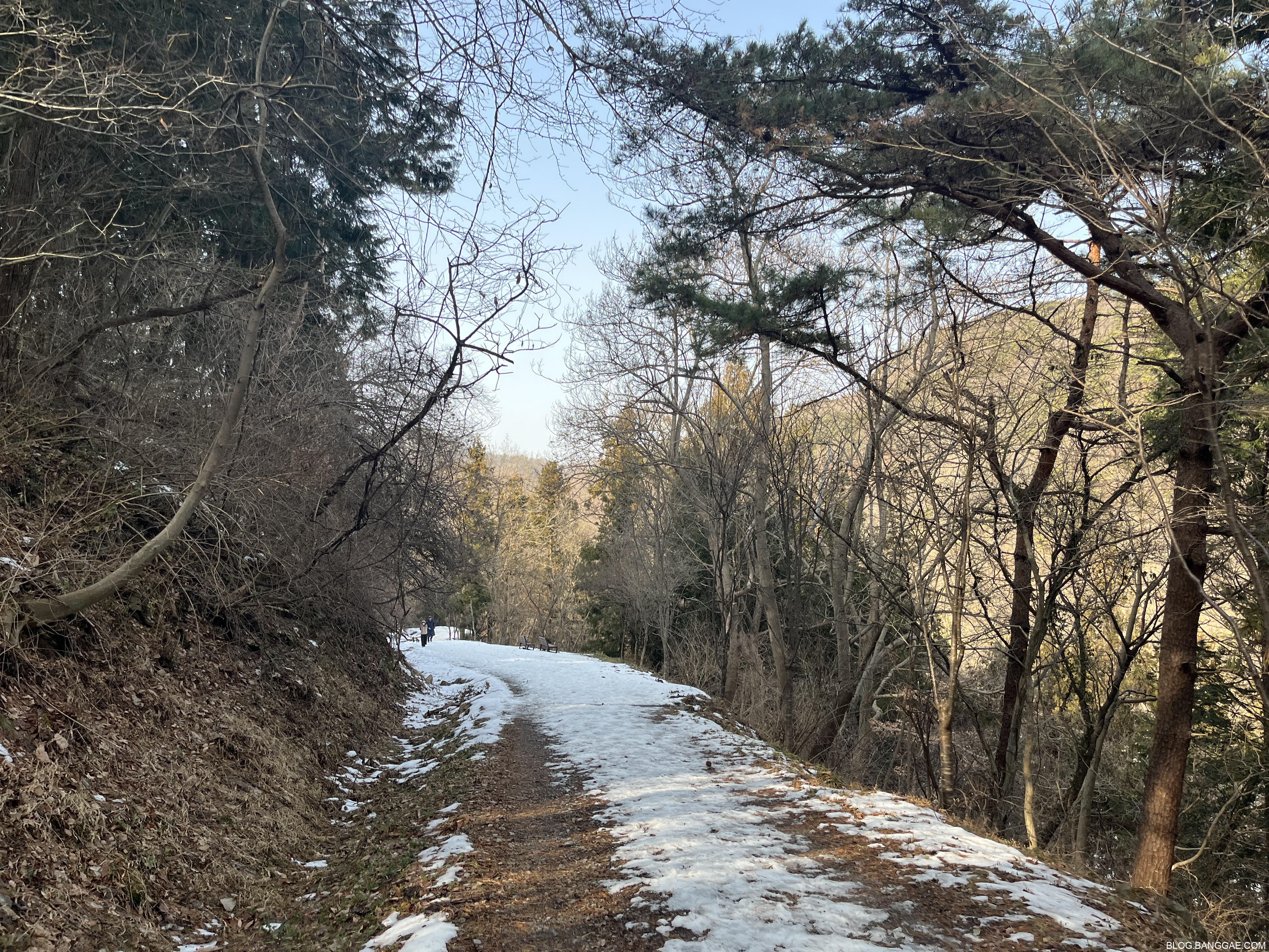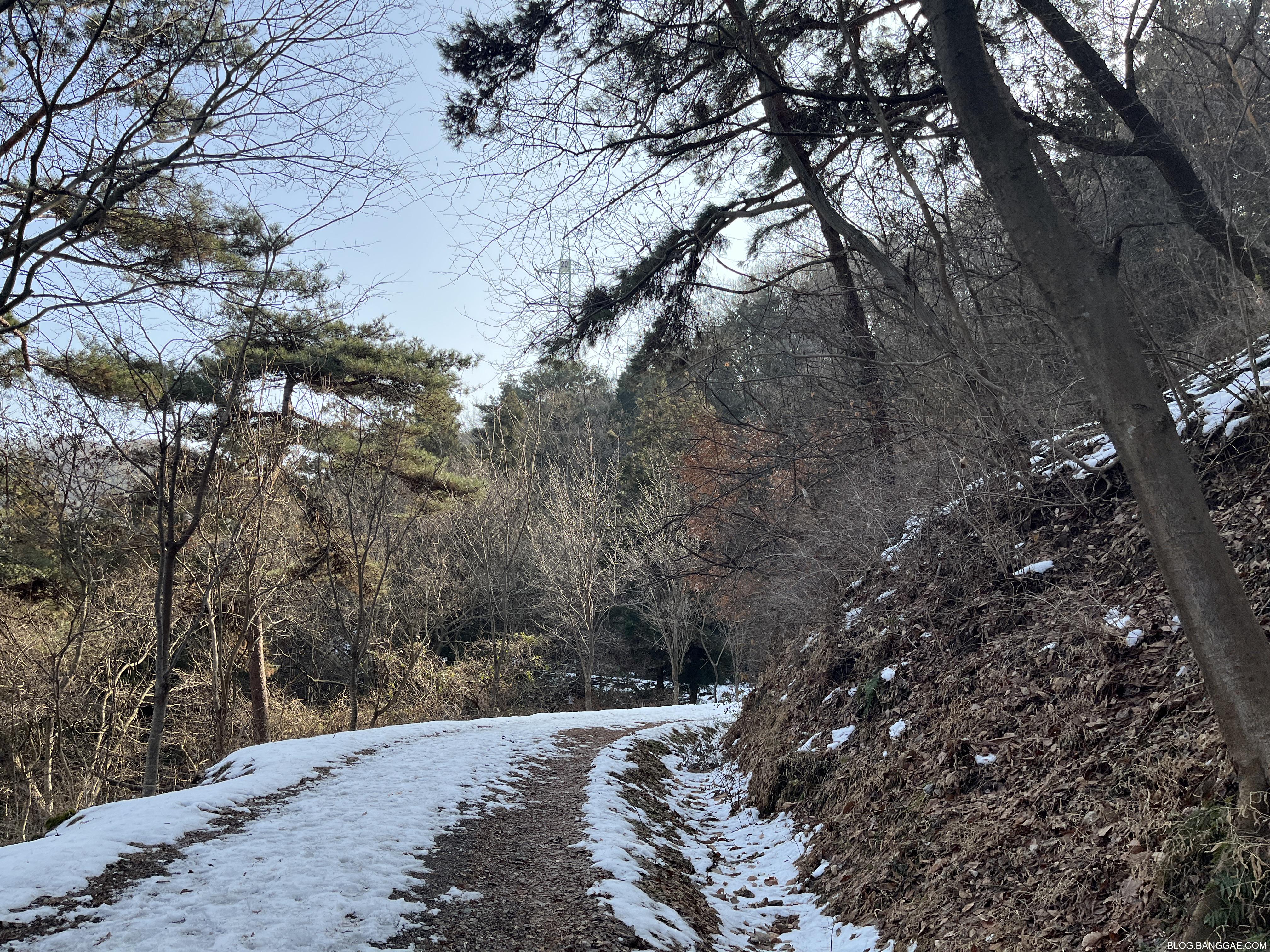 아래 사진과 같은 풍경이 보이면 산으로 가고 있는 길입니다. 위에 지도를 보면 산으로 가도 크게 돌 수 있을 것 같은데 길이 미끄러워서 중간에 되돌아 와서 다시 세량지로 향했습니다.