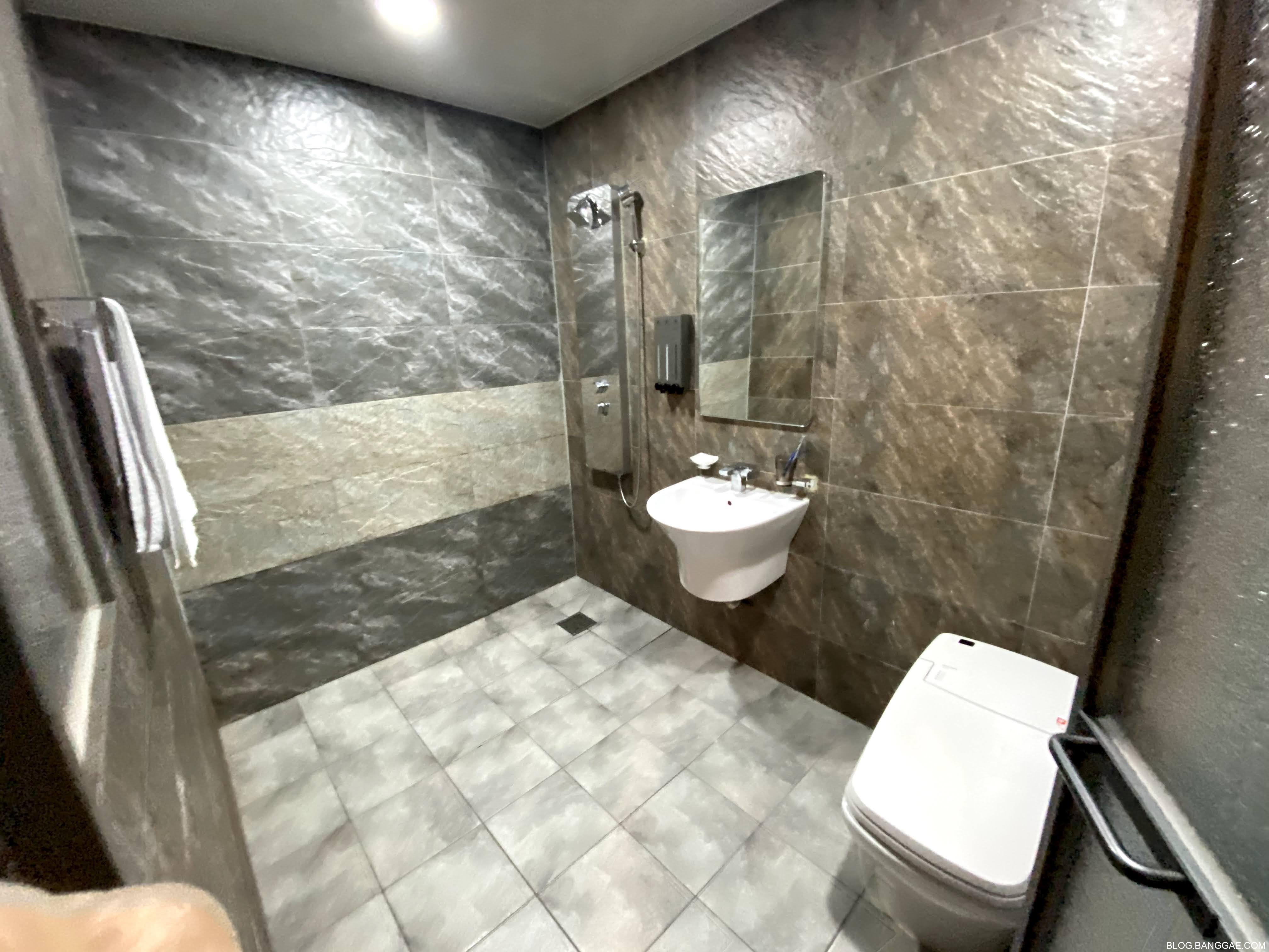 화장실도 꽤 넓은 편인데 욕조는 없습니다.