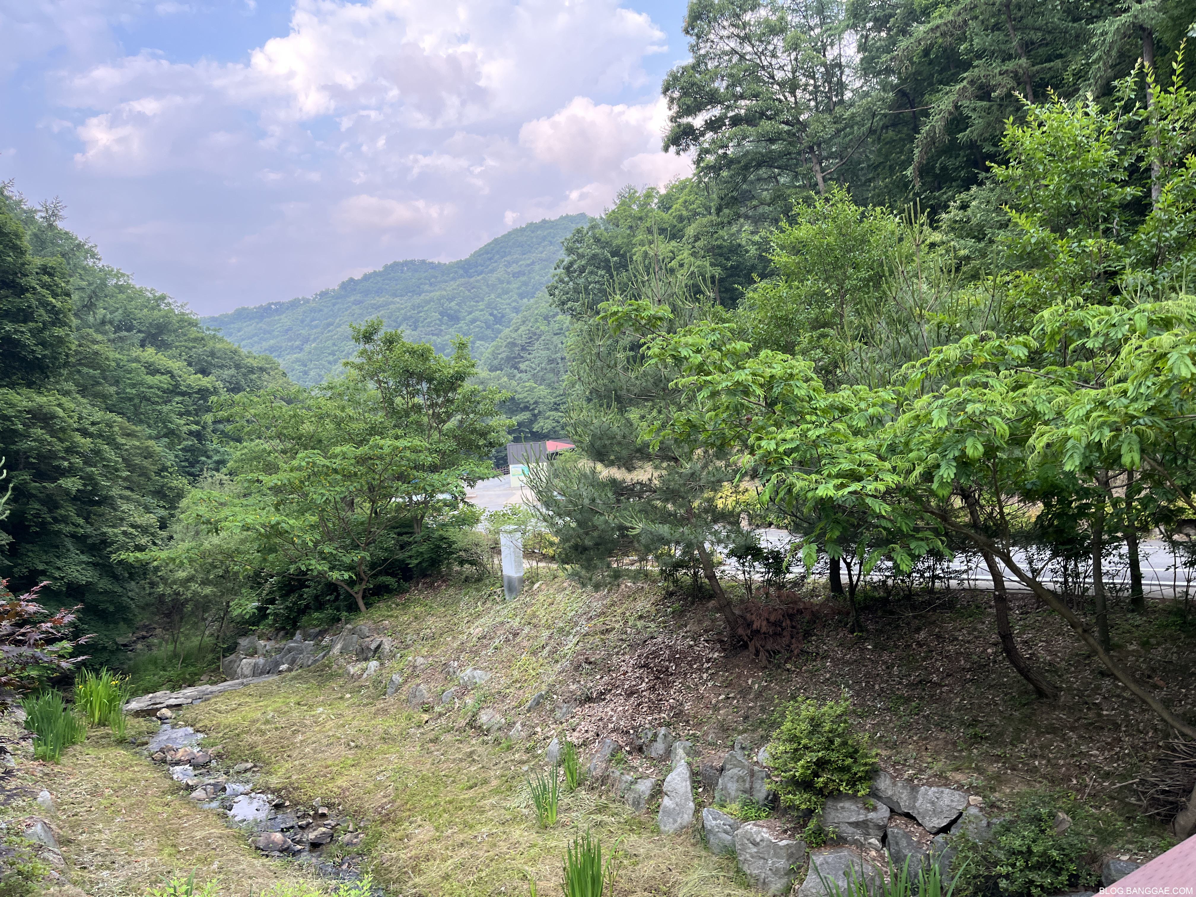 다리위에서 보이는 연립동 캠핑장입니다. 개수대나 화장실을 이용하려면 이 거리를 왕복해야 합니다.