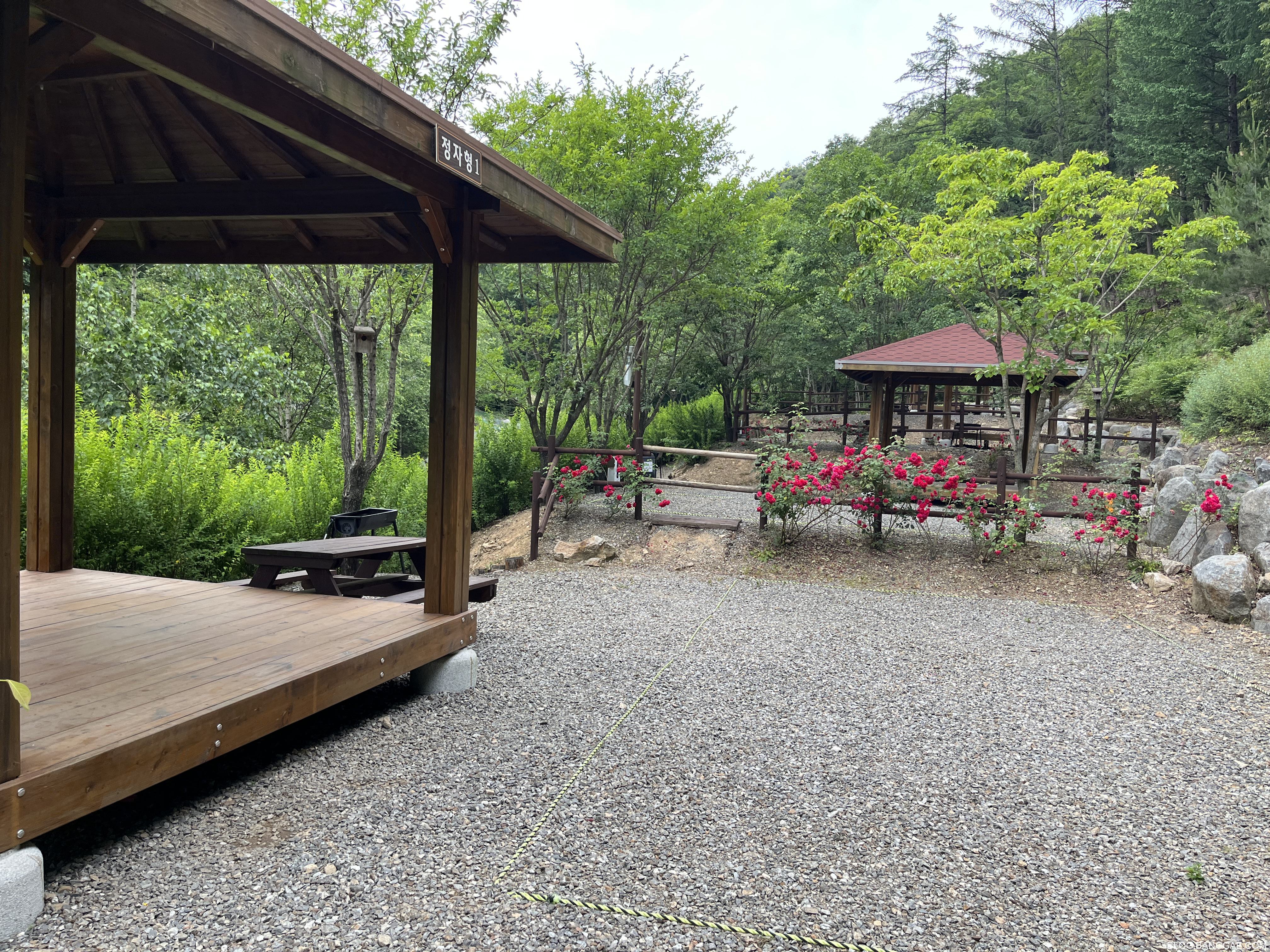 짐이 많으면 불편 할 수도 있을 것 같은데 정자형은 작은 텐트라면 날씨가 궃은 날에도 정자에다 텐트를 치면 좋을 것 같더군요. 환경은 이쪽이 월등히 좋습니다.