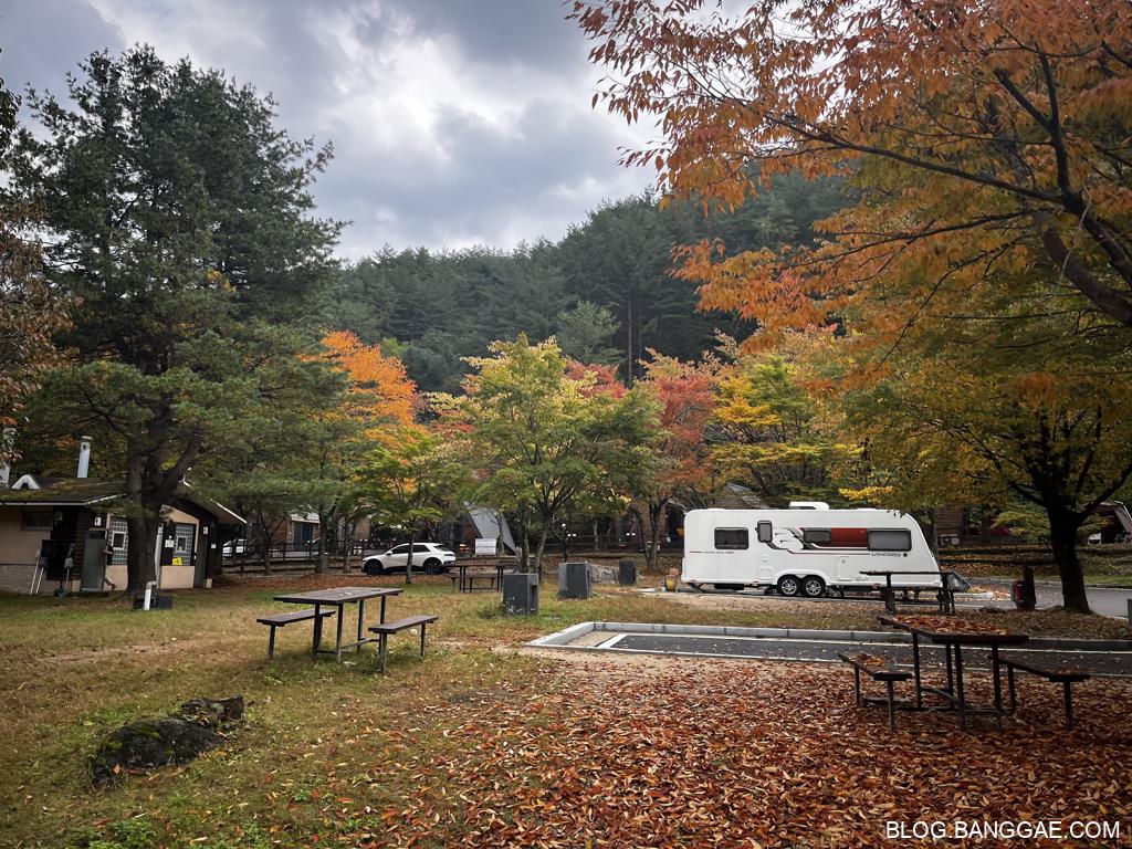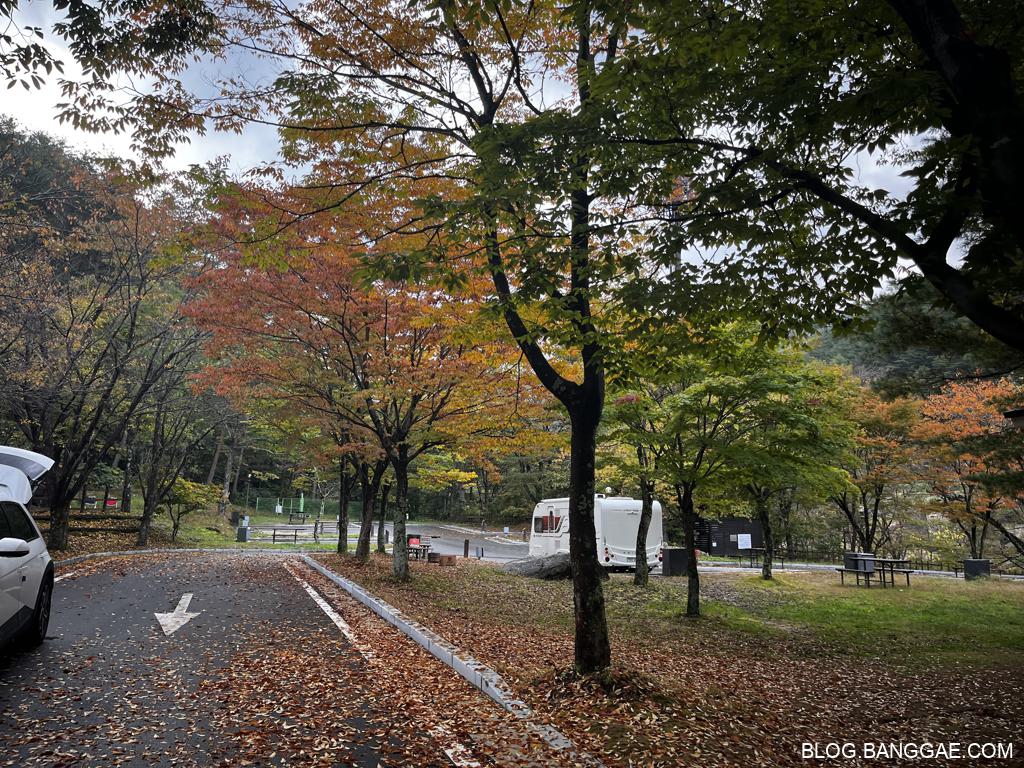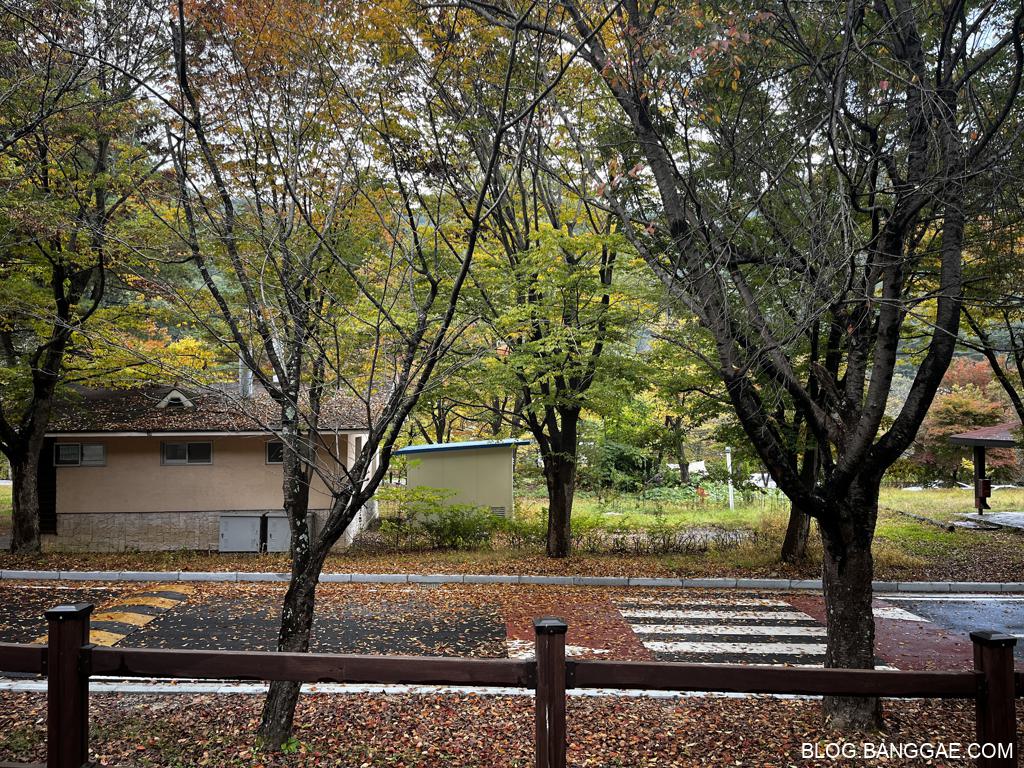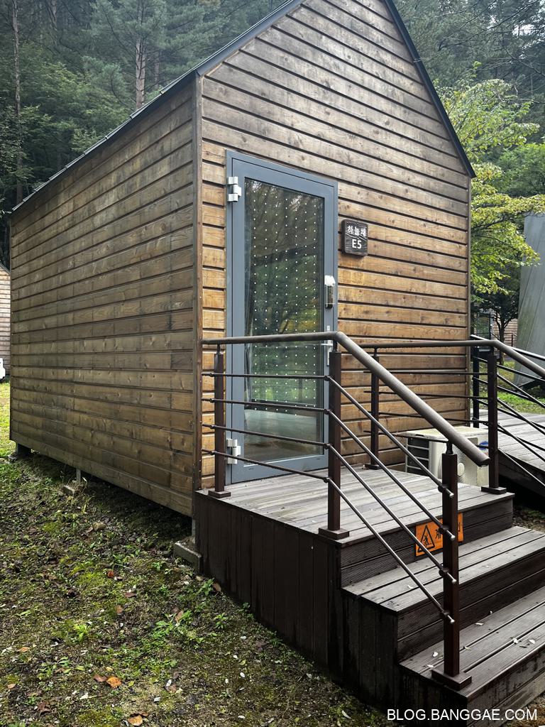 일단 숙소는 특화야영장 E5 하늘채에 머무르게 되었습니다. 각 시설에 주차를 할 수 없는 구조라 주차장에 주차를 해야 하는데 주차장이 바로 옆에 있어 짐 나르는데 큰 불편함이 없는 위치였습니다.