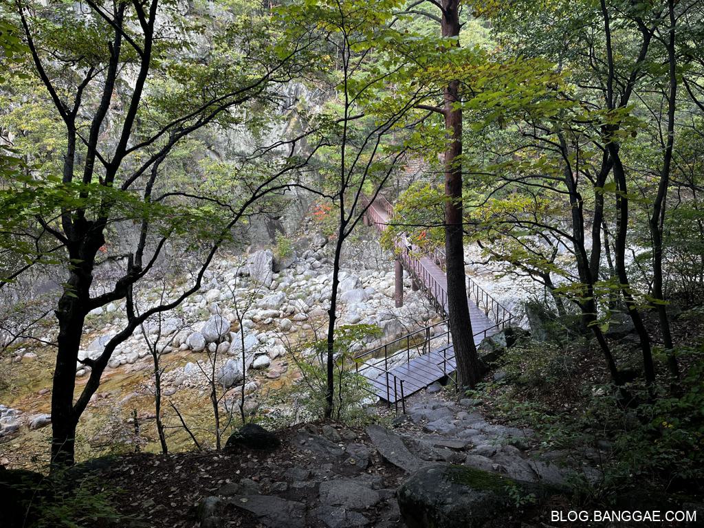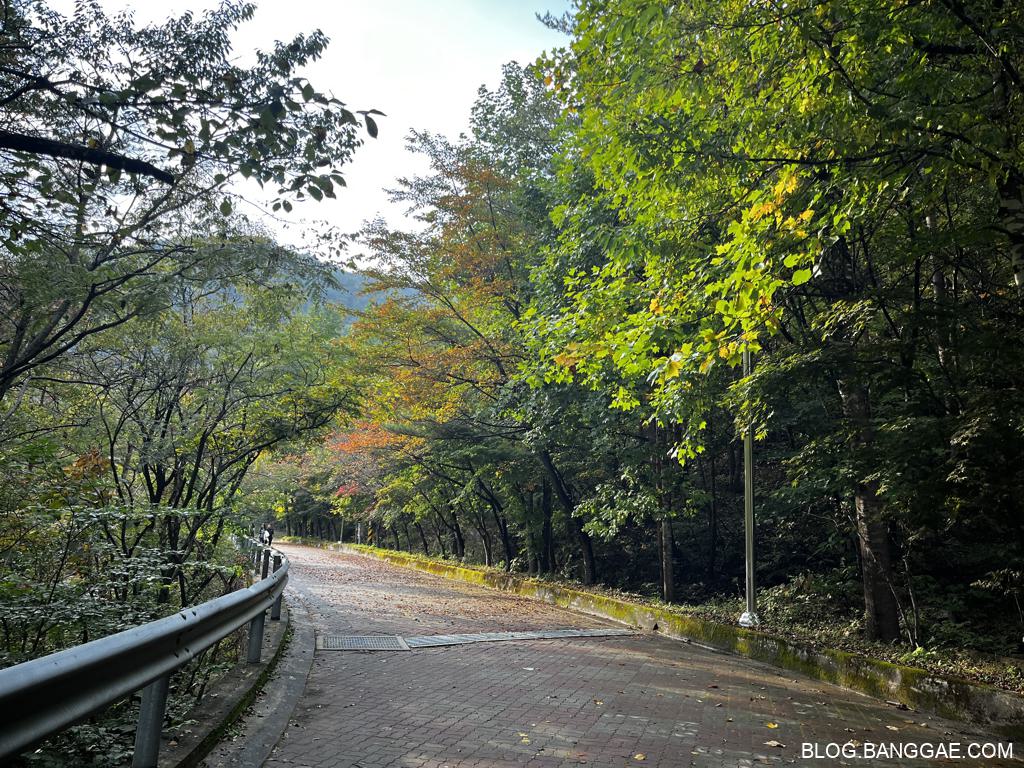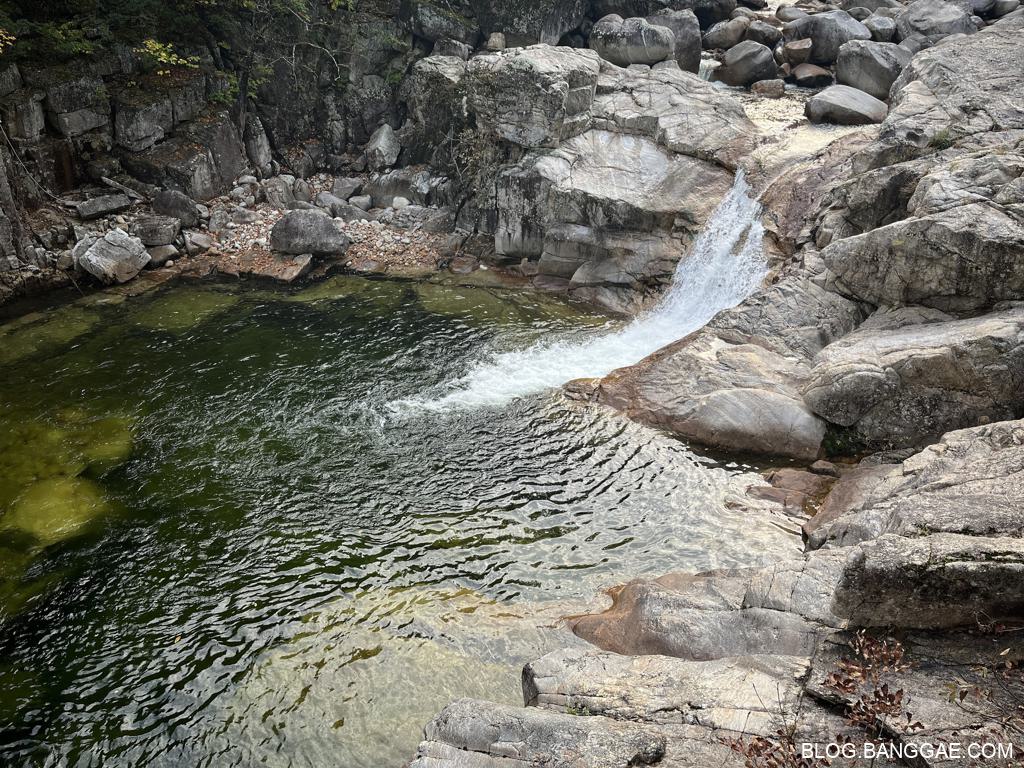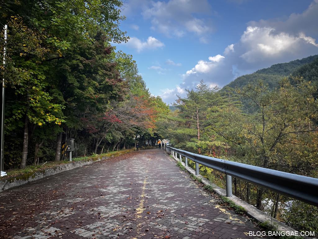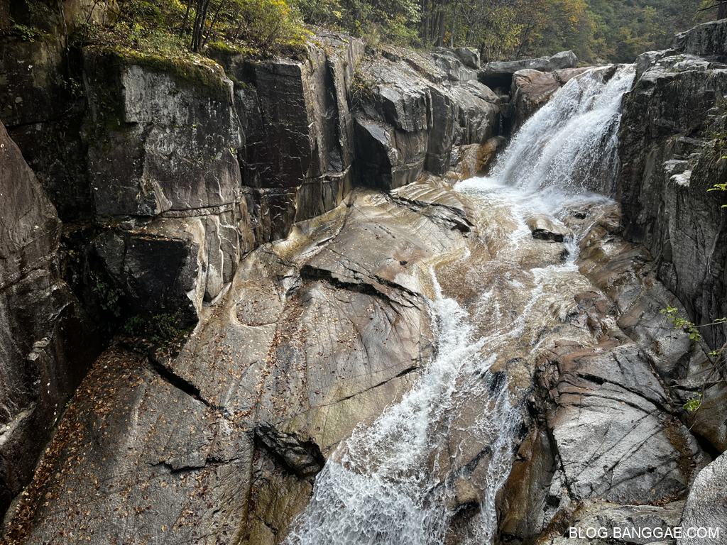 가는 길은 나무가 울창하고 계곡을 따라 걷는 길이라 상쾌 합니다. 초입에 있는 폭포는 웅장한 편이니 내려가서 보고 가세요.