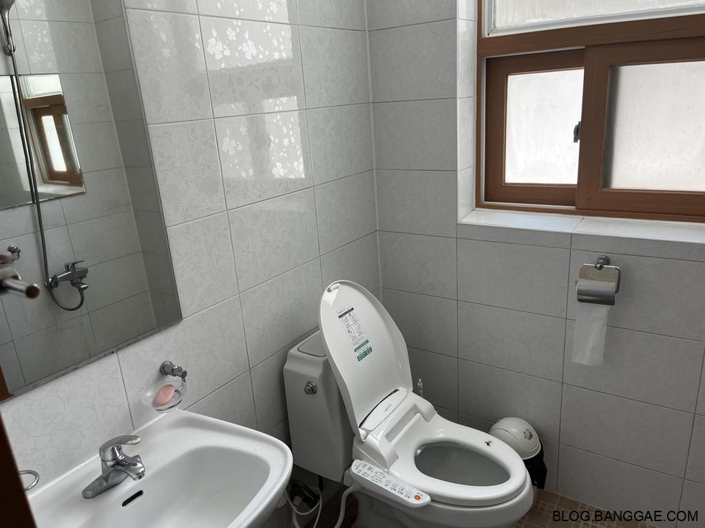 이 곳 휴양림은 화장실 천장에 온풍기가 달려 있어 따뜻합니다. 다른 휴양림보다 세세한 부분에서 더 신경쓴 모습입니다.