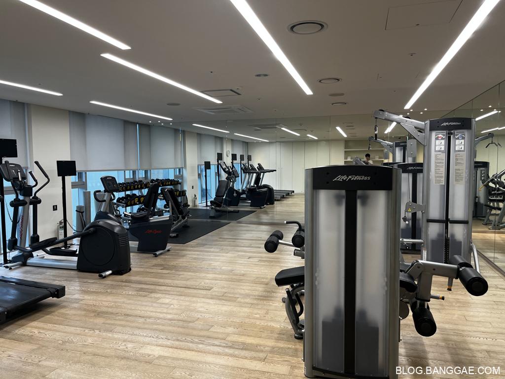 3층에 피트니스가 있는데 체크인하고 저녁 먹기 전에 잠깐 운동을 하고 왔습니다. 기본적인 운동기구와 폼롤러 요가매트등도 갖추고 있습니다. 여분의 타월과 물도 있네요. 여행중 잠깐 운동을 하는 것이 피로 회복에 조금 더 도움이 되는 것 같습니다.