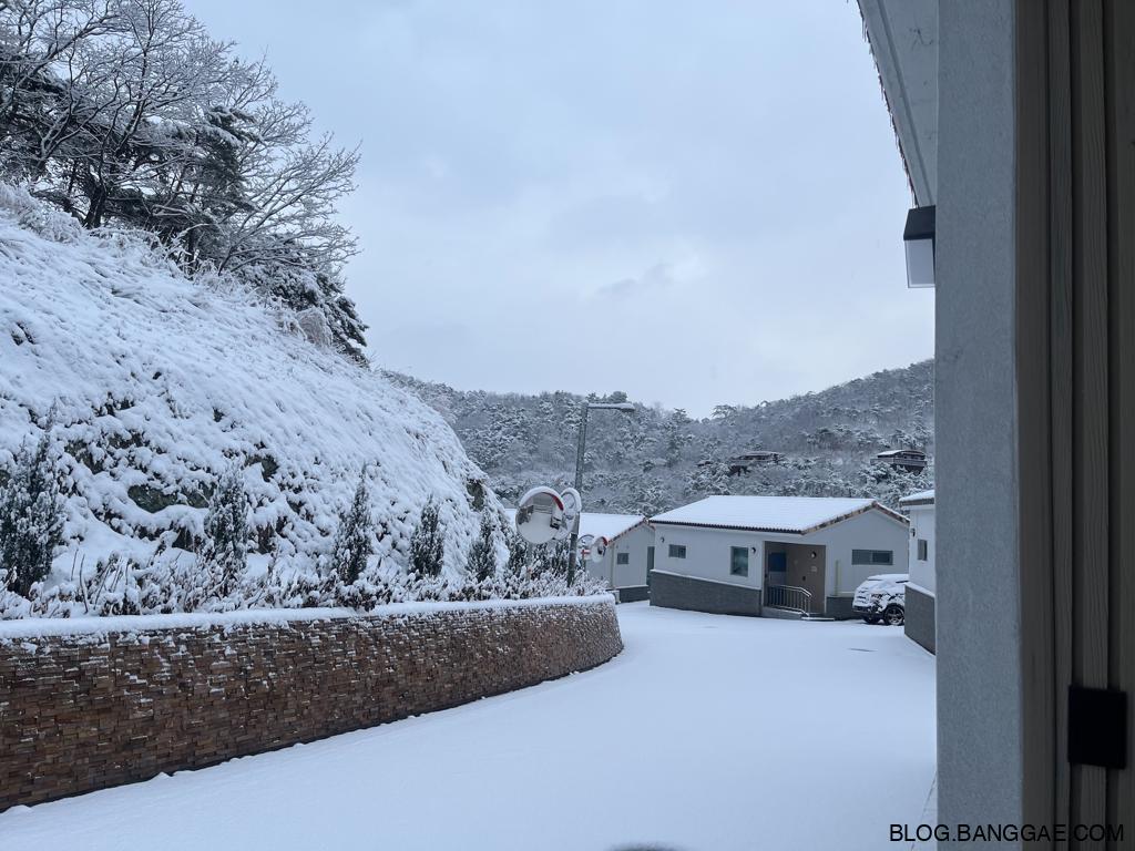 나가는 길에 제설을 하긴 했지만 경사 때문인지 못 올라가는 차량 몇대가 길을 막고 있어 퇴실이 좀 힘들었습니다. 사람들이 모여 차를 밀고 해서 겨우 빠져나갔습니다. 이곳 휴양림은 여러 번 방문했지만 바다와 가깝고 시설이 좋아 방문할 때마다 좋은 기분을 안고 가는 곳입니다.